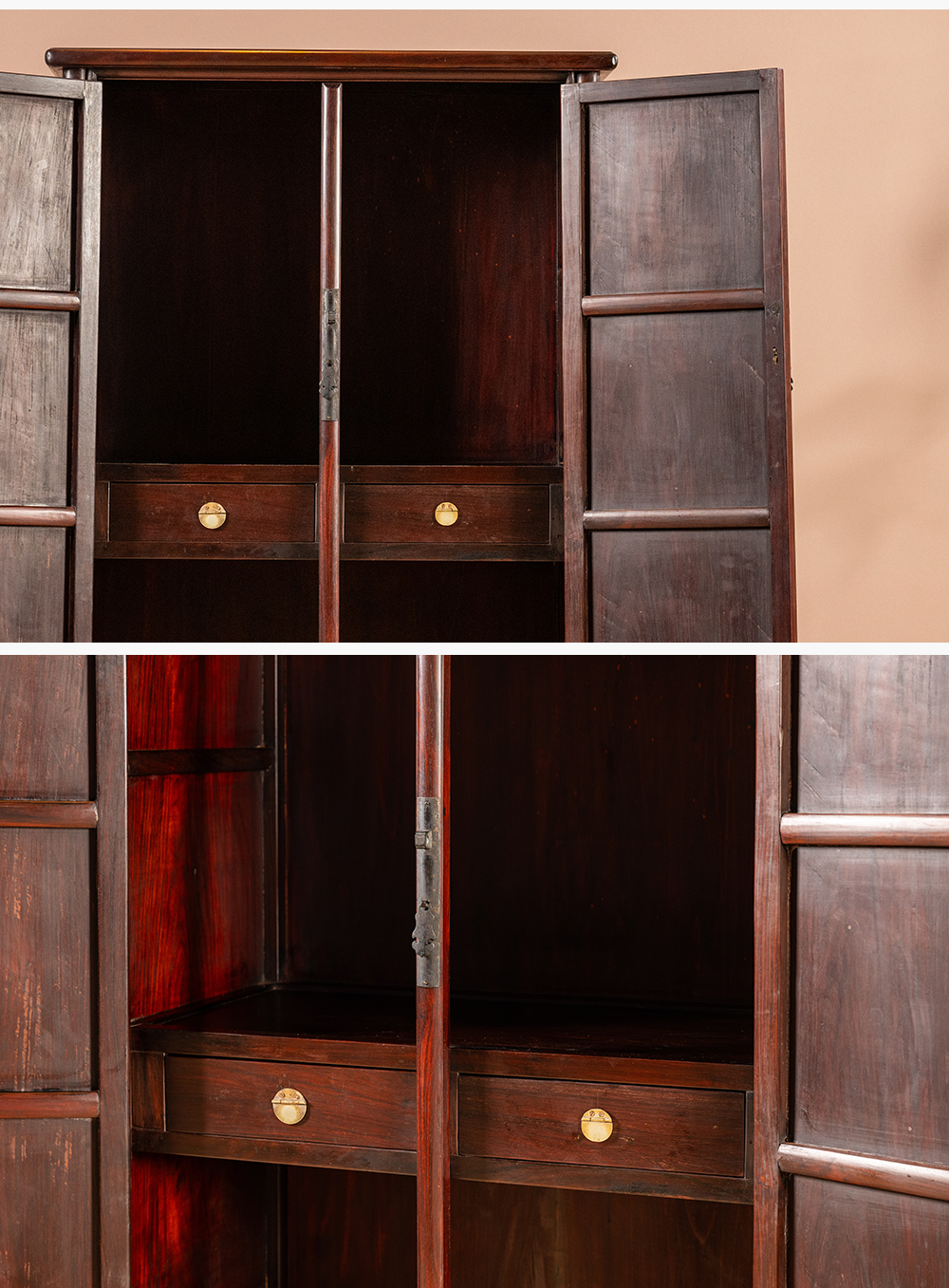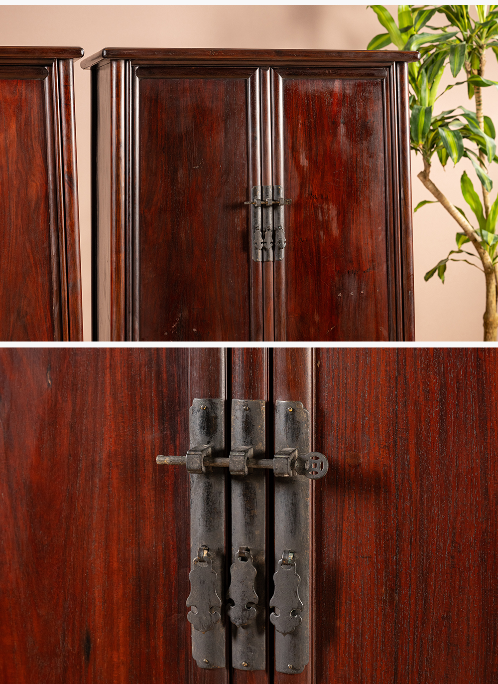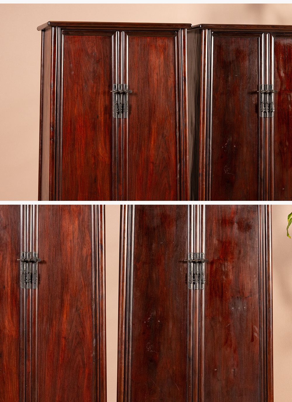 清 黄花梨镶绿石透雕螭龙纹大插屏