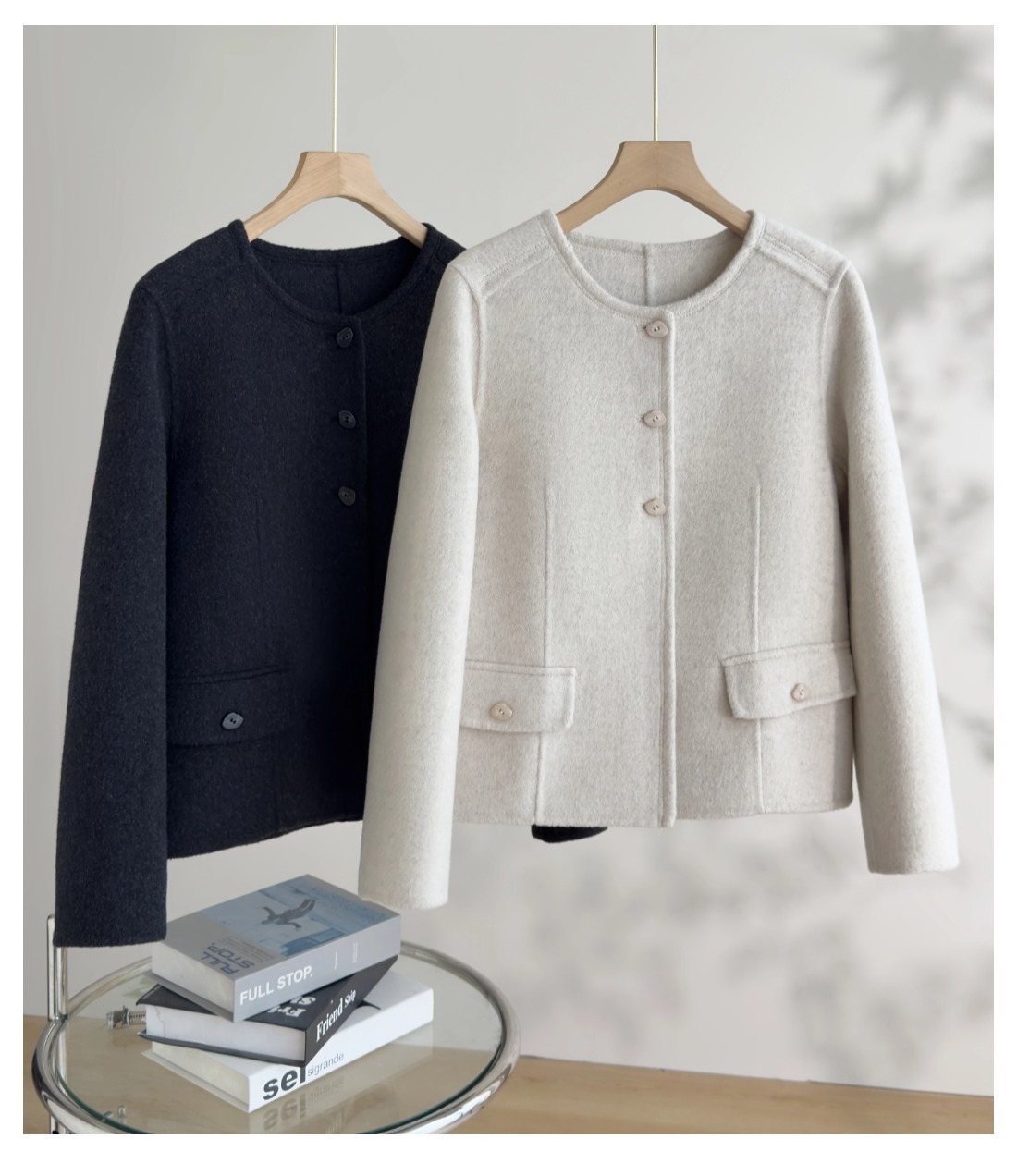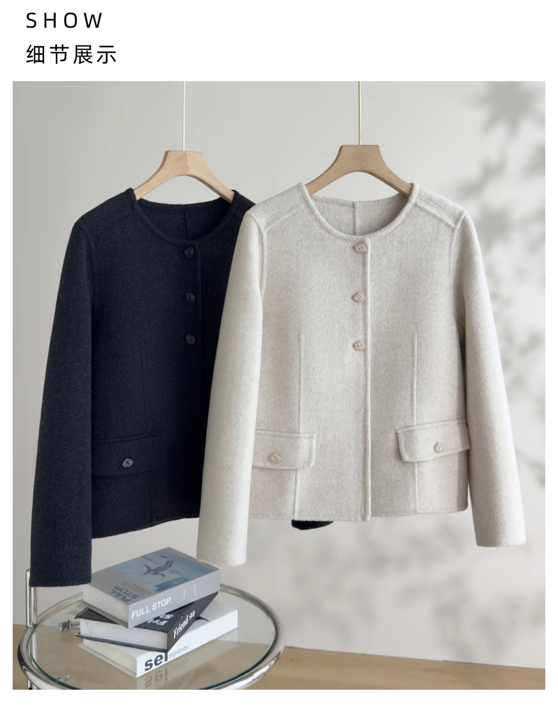 「自」全新升级【铂金会员413/天猫559/差价146】(65157)洛诗琳气质双面呢大衣2025秋冬小个子轻奢圆领毛呢外套女