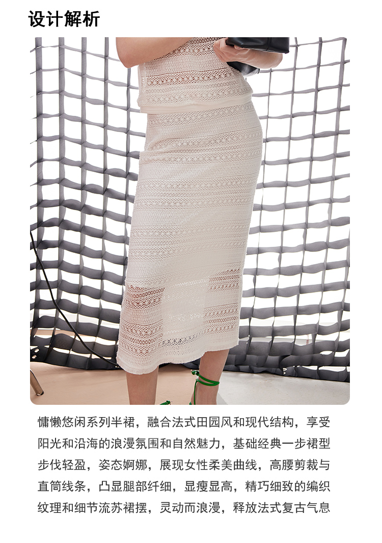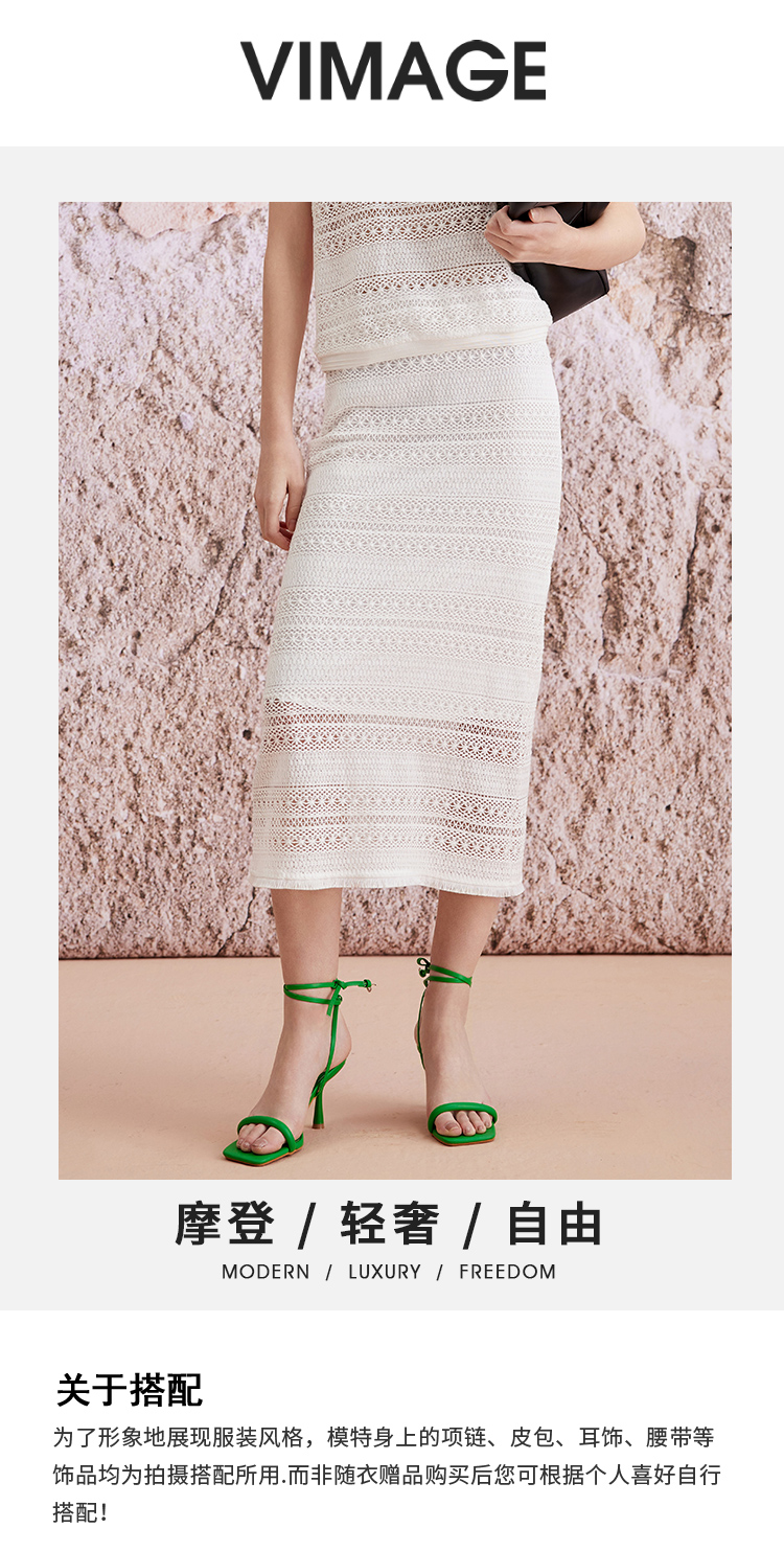 VIMAGE纬漫纪夏季新款蕾丝镂空直筒包臀半裙女V2106722