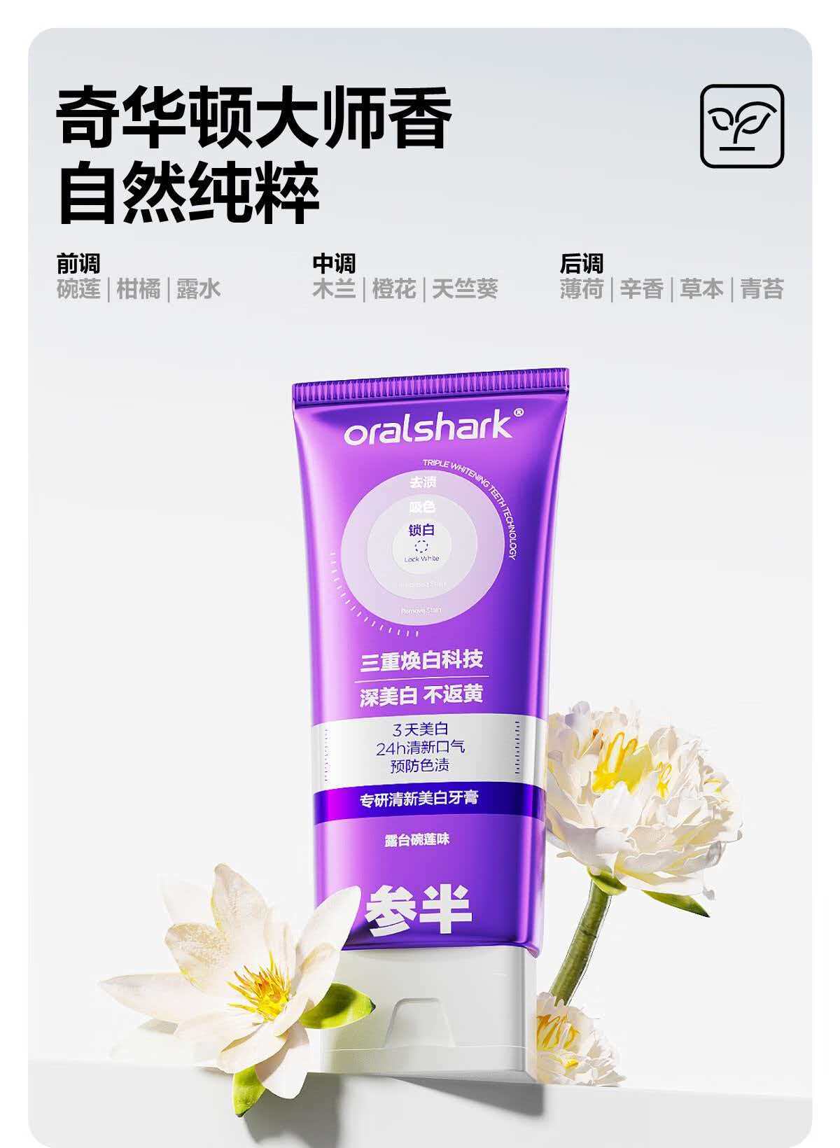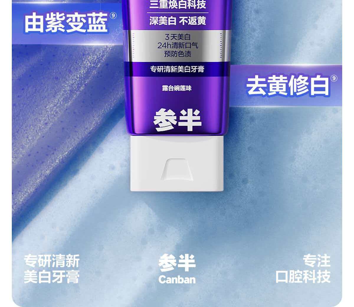 【精选】参半专研清新美白牙膏 色修紫光去渍亮白减轻口臭气清新口气100g
