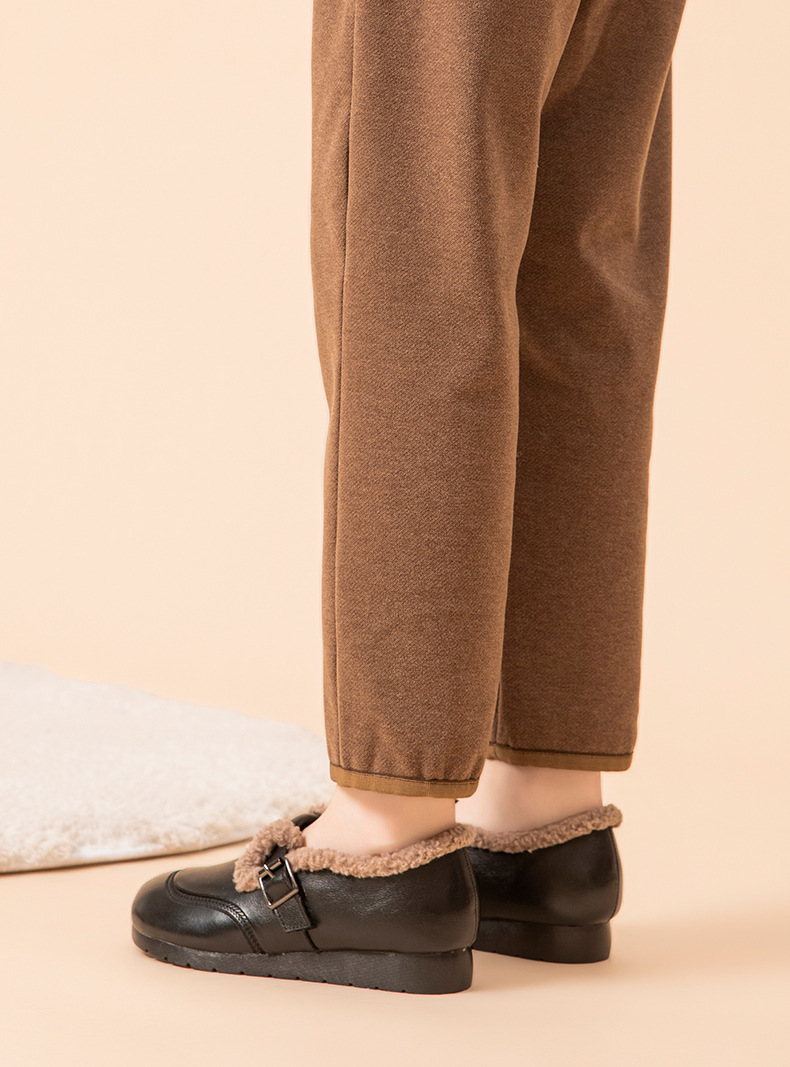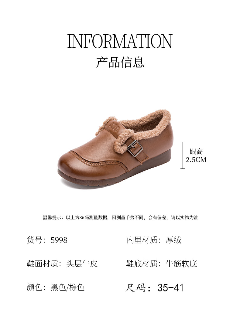 真皮毛毛鞋休闲羊羔毛平跟,牛筋底中老年妈妈加绒棉皮鞋MLD-5998