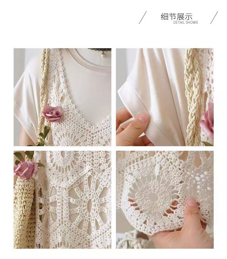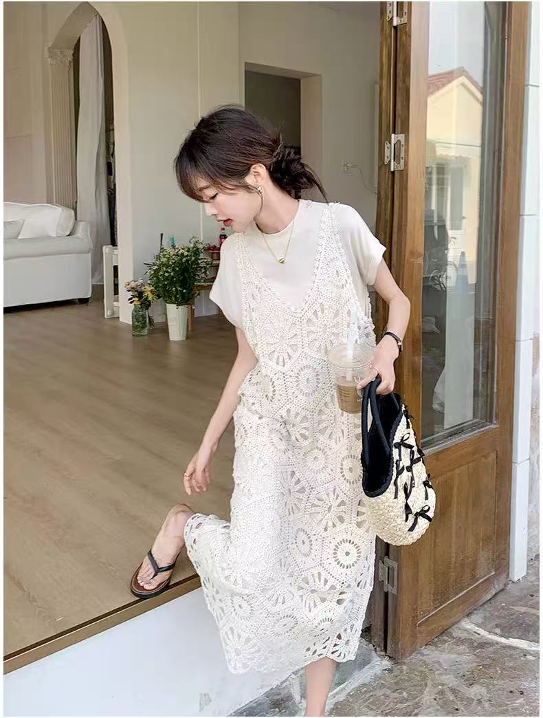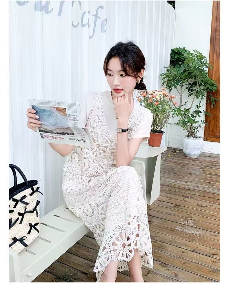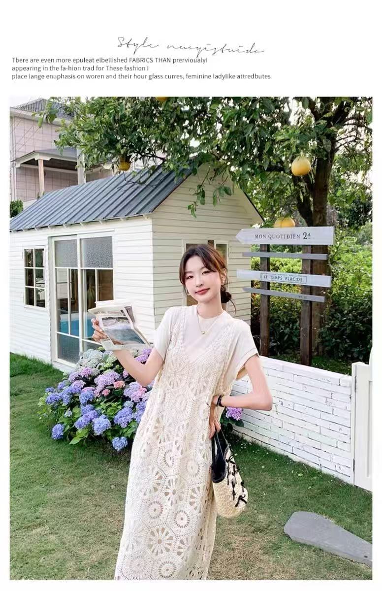 套装【MYBL】8650温柔风叠穿罩衫镂空超仙连衣裙两件套-喜出