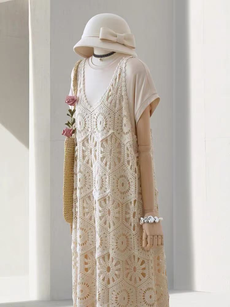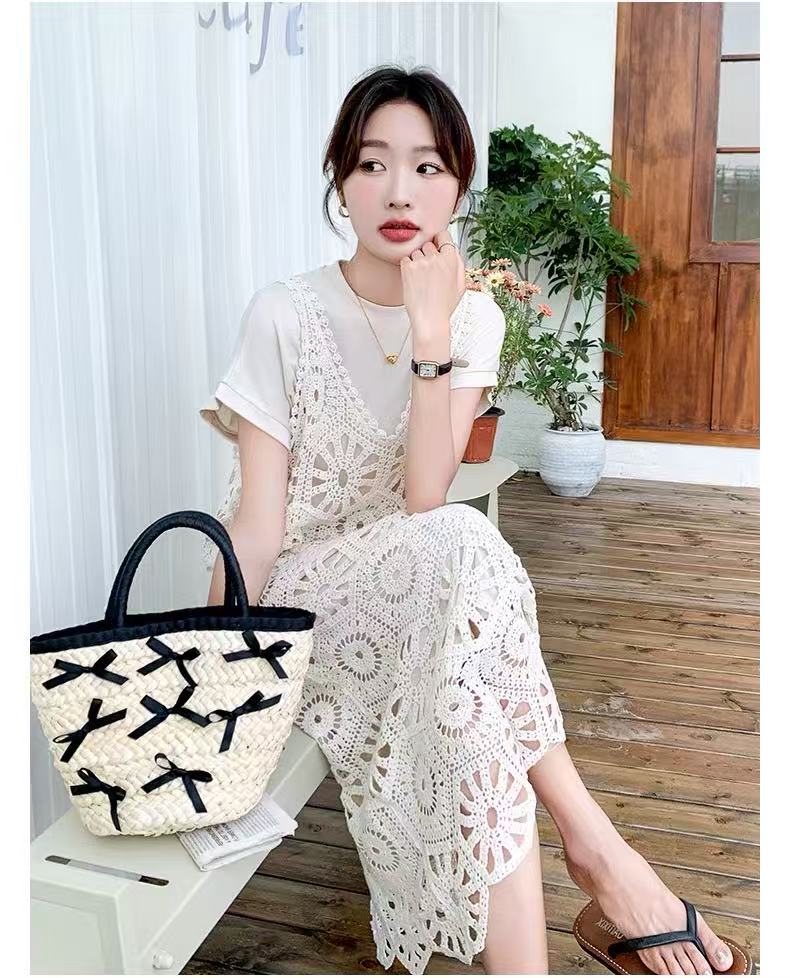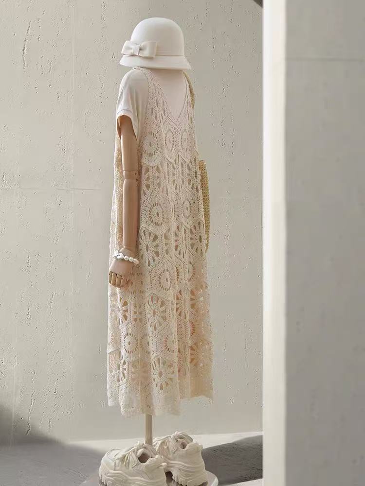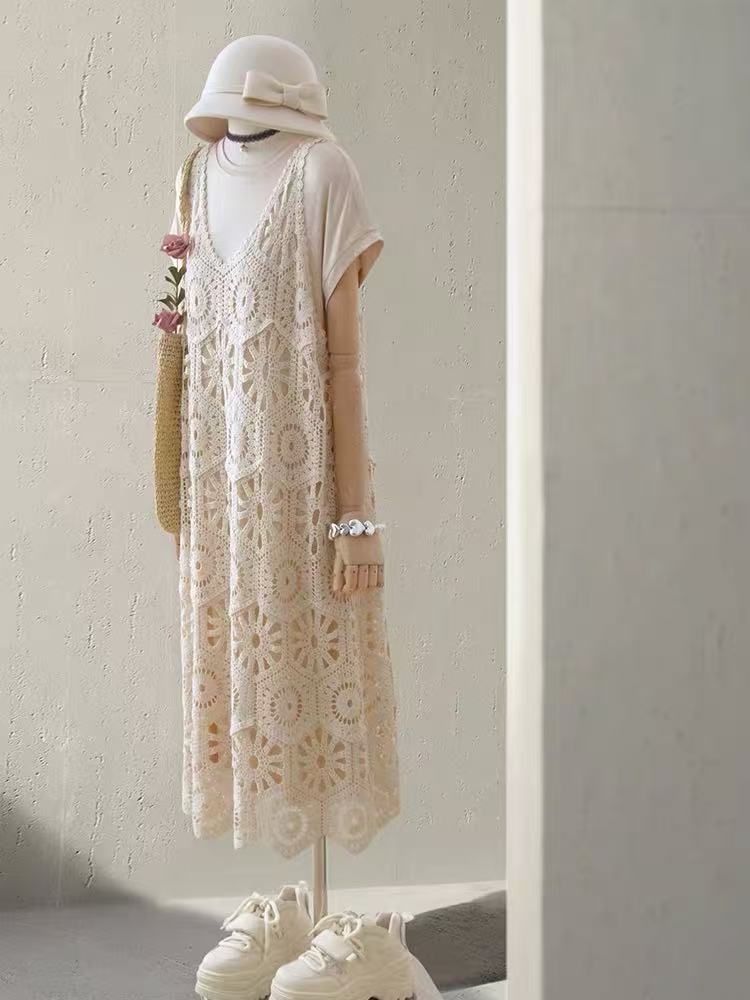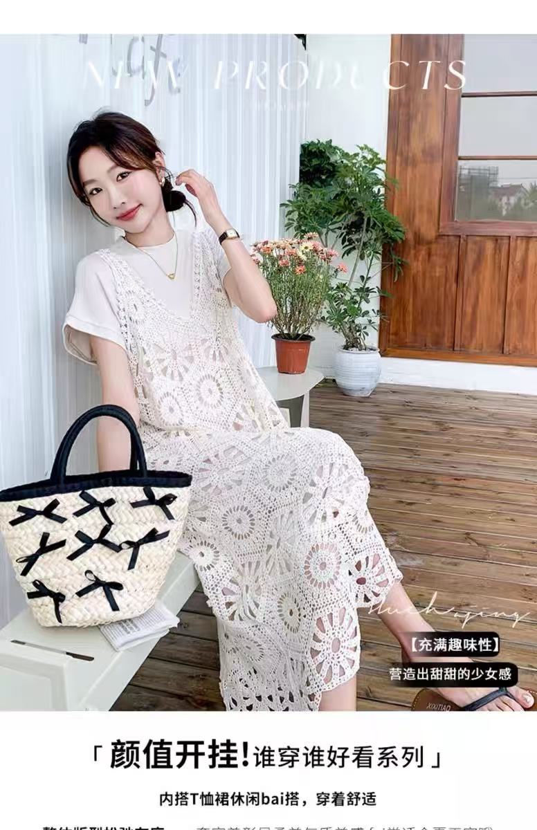 套装【MYBL】8650温柔风叠穿罩衫镂空超仙连衣裙两件套-喜出