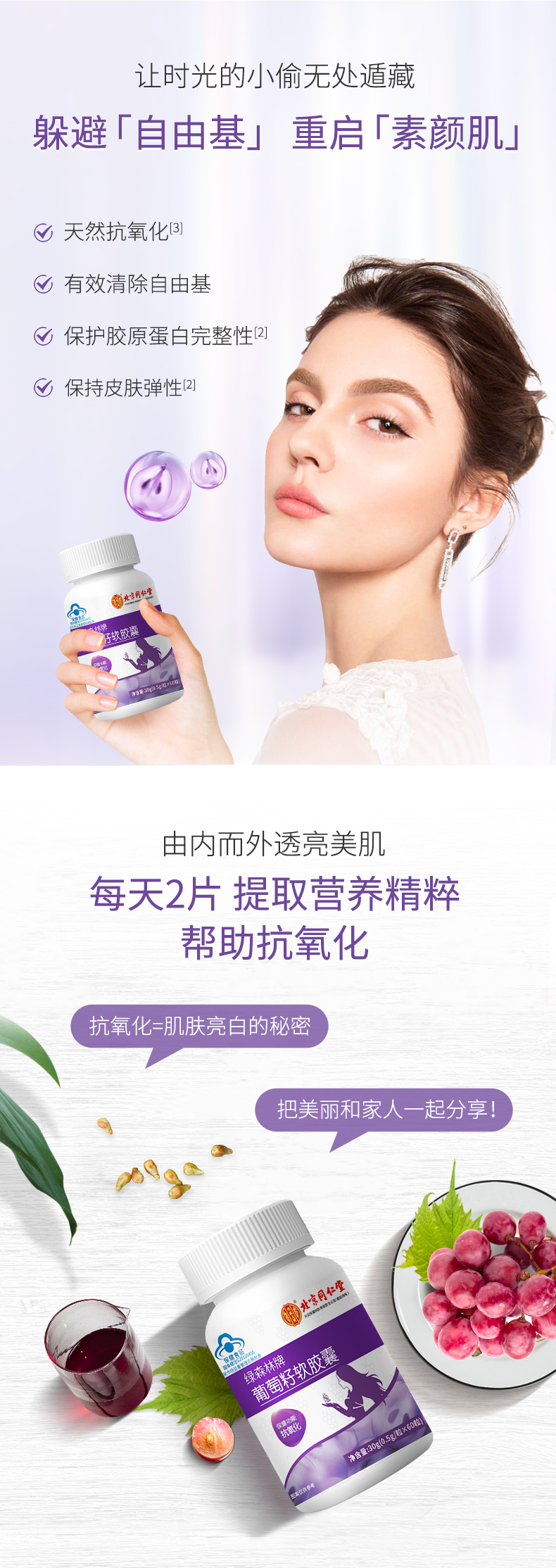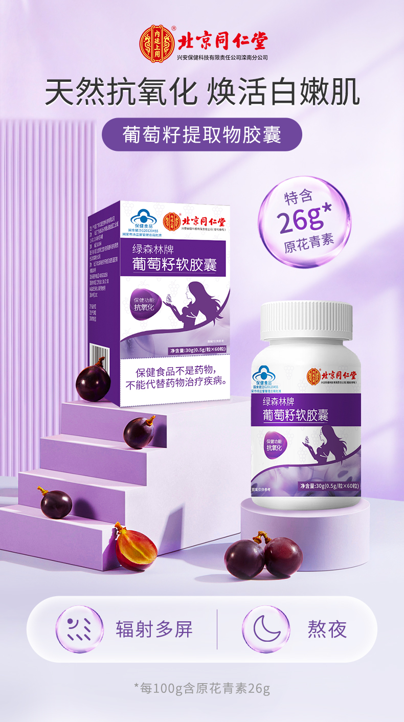 北京同仁堂-葡萄籽软胶囊30g(0.5g/片x60片)