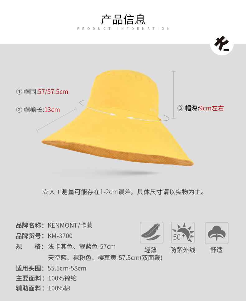 卡蒙KM-3700虞书欣同款卡蒙防晒帽双面戴渔夫帽 商品图12