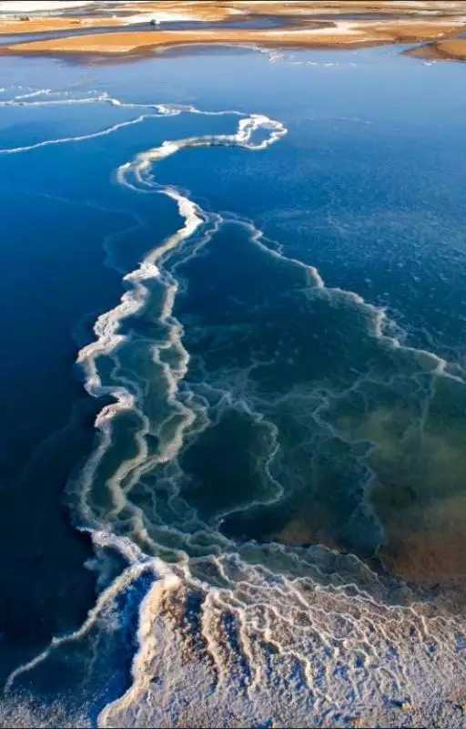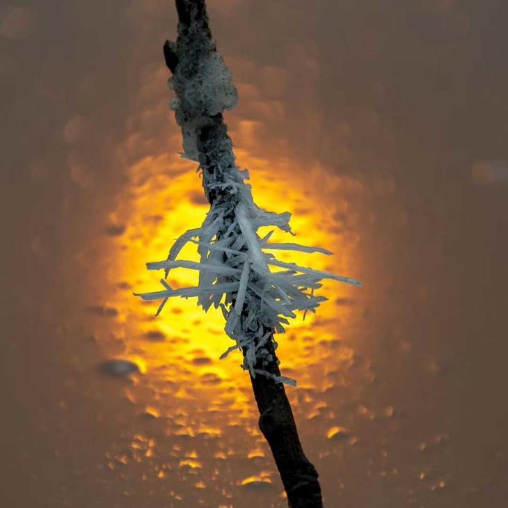 这些看上去为白色针状的结晶体就是芒硝,学名为十水硫酸钠,由于受今年暖冬气候的影响,湖水遇风遇冷,水中的硫酸钠结晶形成美丽的硝凇景观。