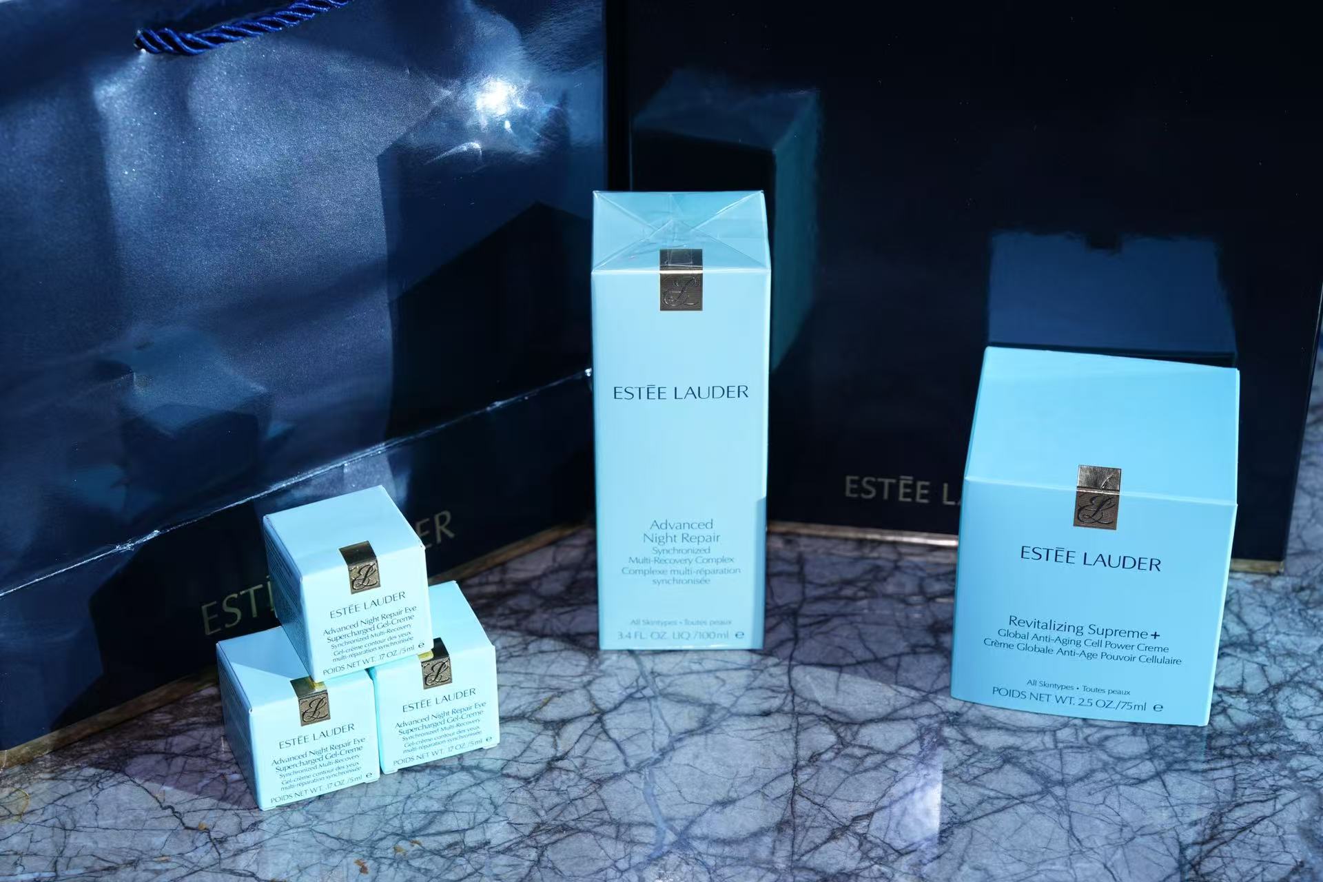 雅诗兰黛智妍面霜75ml+小棕瓶精华100ml+眼霜小样5ml*3瓶+礼盒礼袋