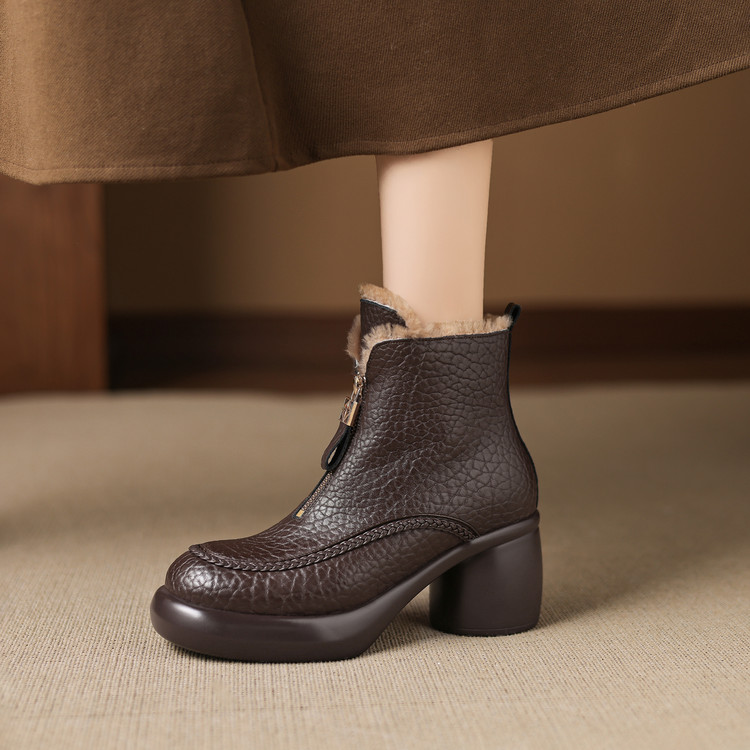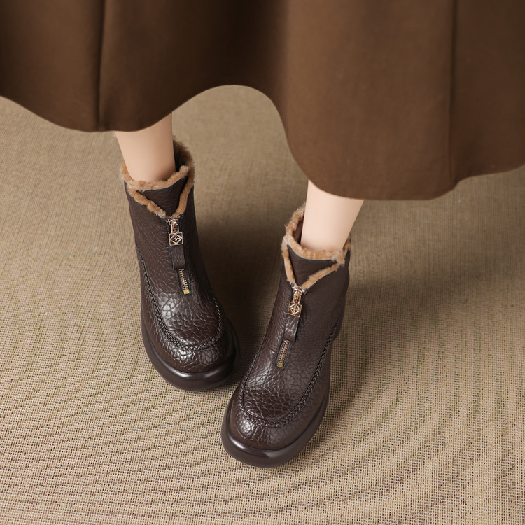 【预售5天】羊羔毛雪地靴女真皮东北大棉鞋新款冬季加绒厚毛保暖百搭短靴ZYY&A1555
