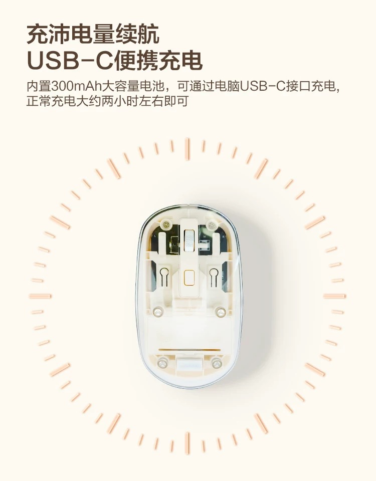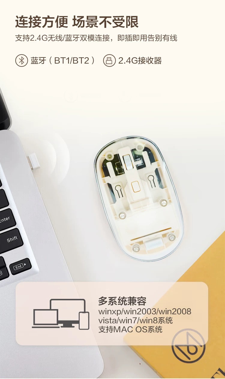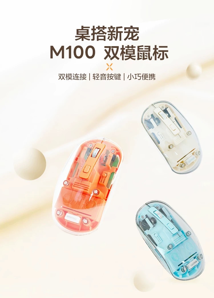 罗摩M100蓝牙2.4无线透明鼠标静音双模台式电脑笔记本办公商务USB
