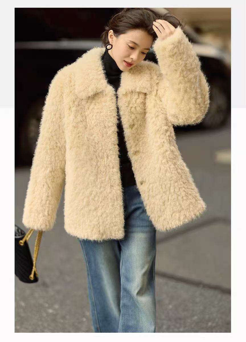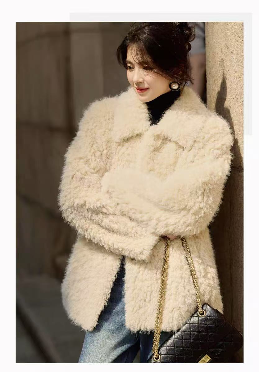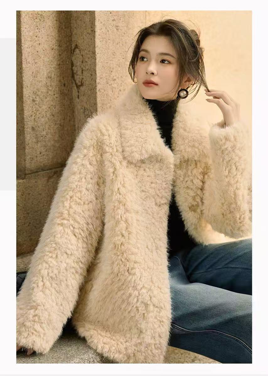 【环保皮草】P01翻领皮毛一体秋冬大衣外套-喜出