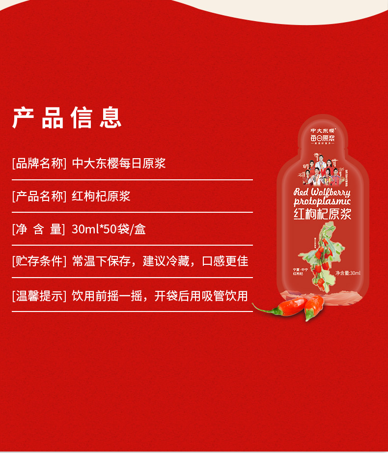 【中大东樱 年货】枸杞原浆饮大礼盒30ml*50袋/盒【周日不发货】
