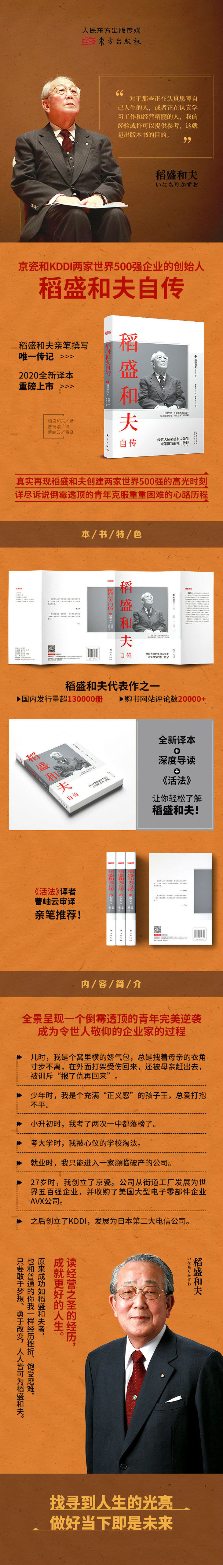 《稻盛和夫自传》自2015年出版以来,发行量已突破12万册,深受国内读者好评和追捧。为了让更多读者了解和走进稻盛和夫思想,东方出版社特邀长期研究稻盛哲学的曹寓刚倾情翻译新版《稻盛和夫自传》,并由《活法》译者曹岫云审校和撰写推荐序。