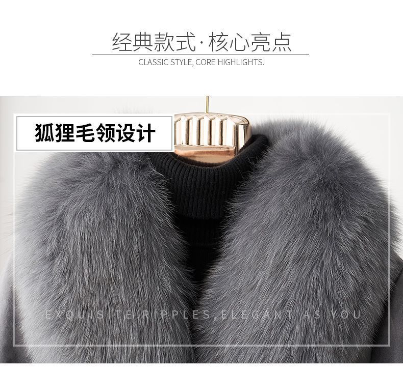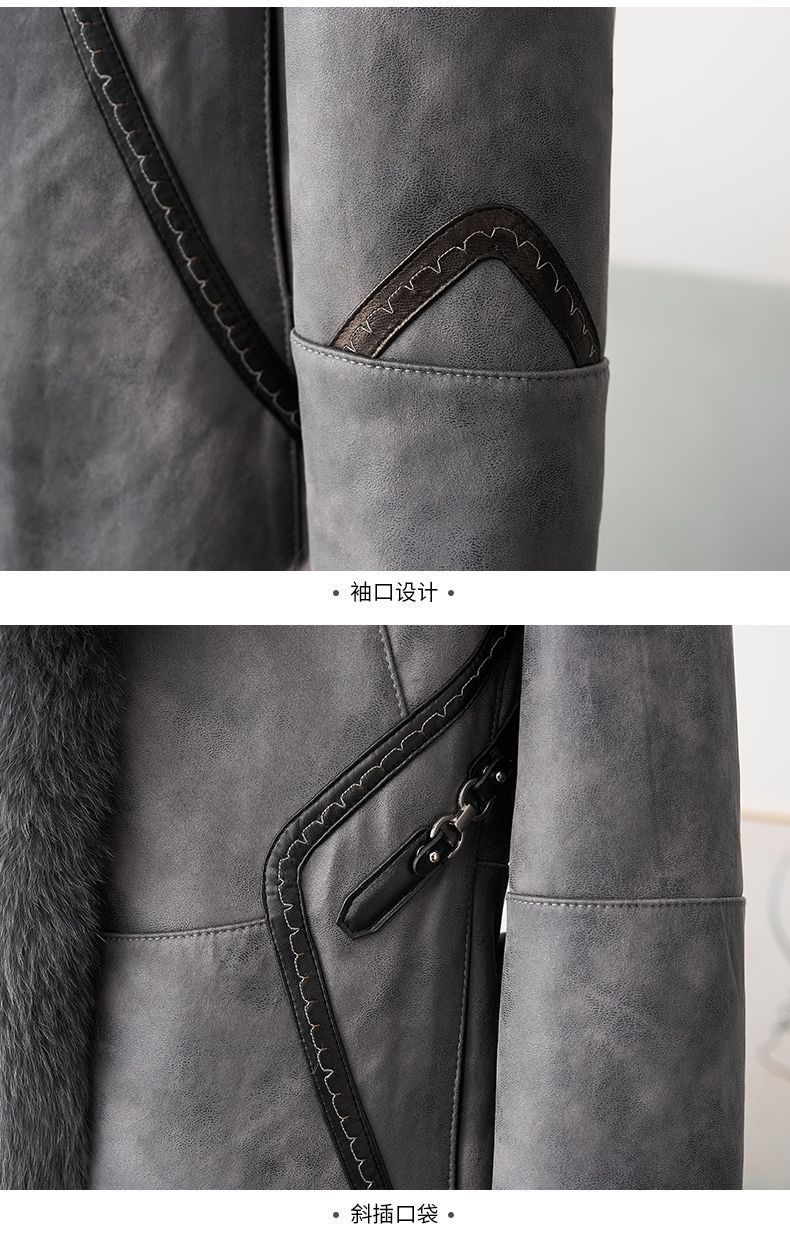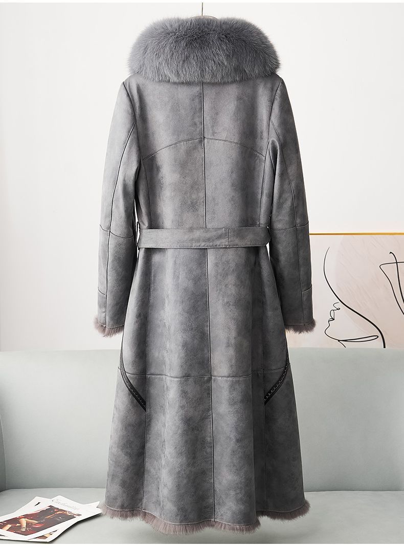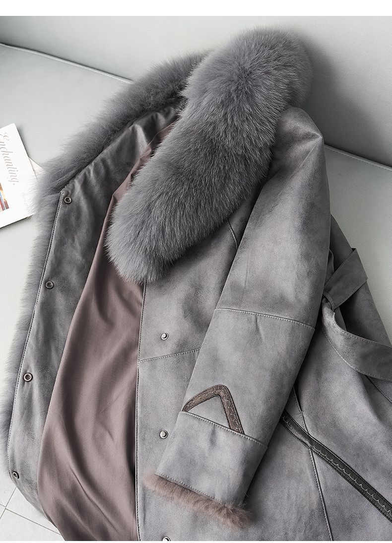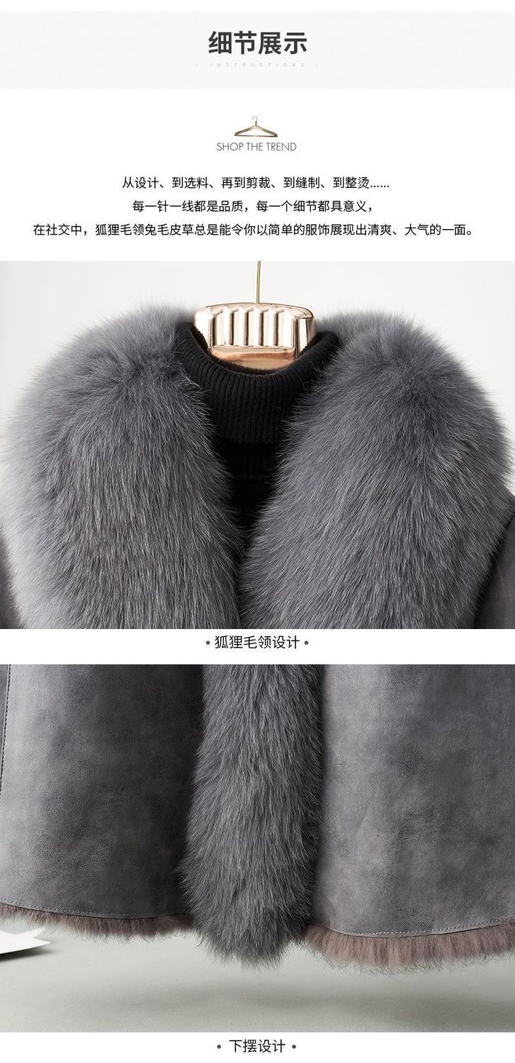 HH OH26166-1C系带内里兔皮毛一体大衣狐狸毛领皮草外套