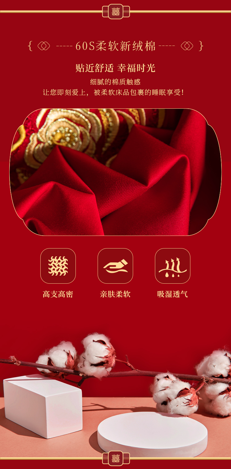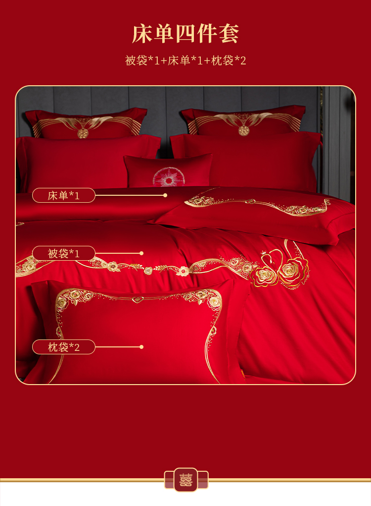多喜爱 喜玫瑰婚庆床上用品四件套 为爱绽放