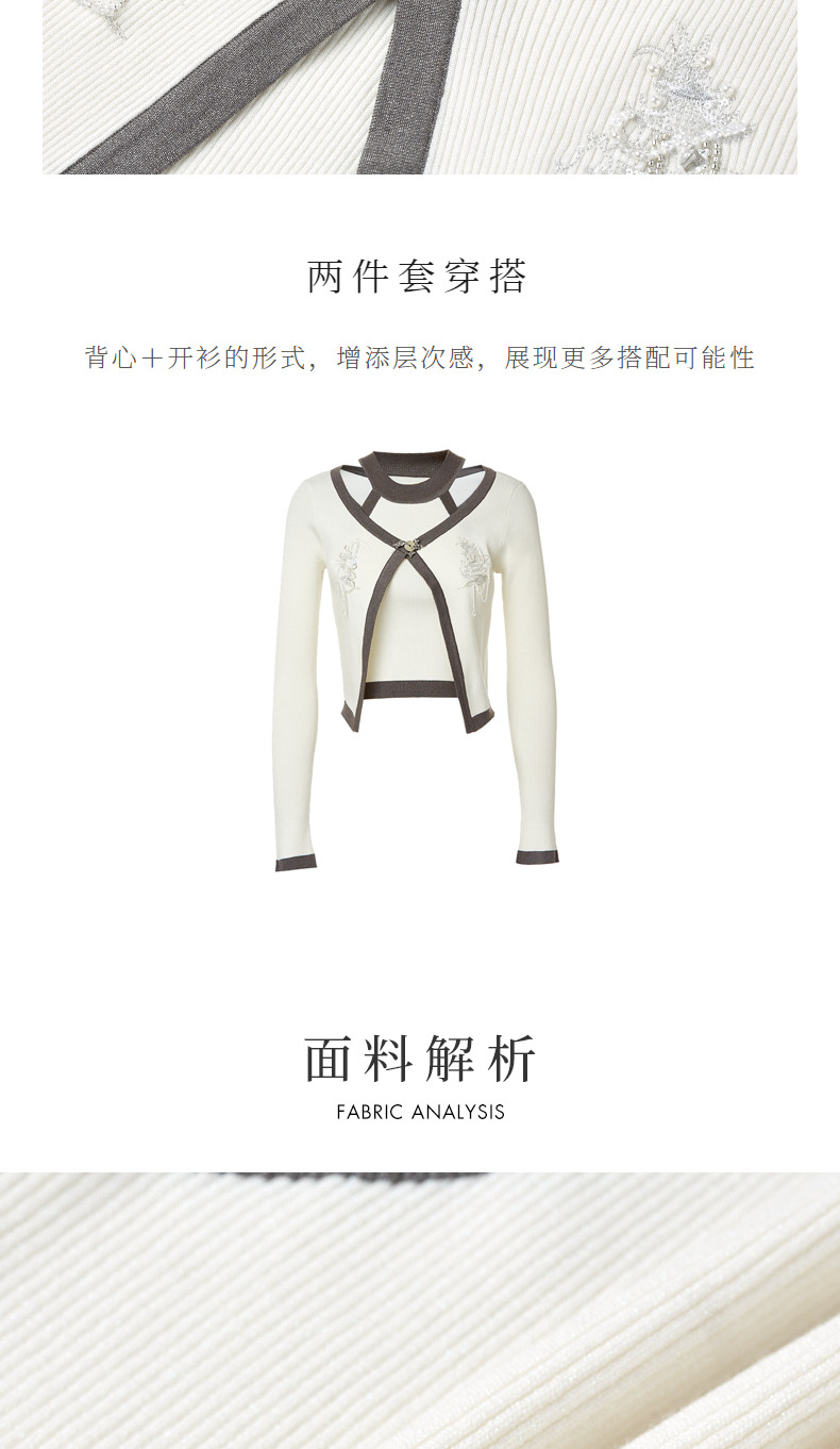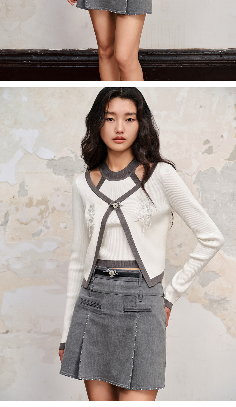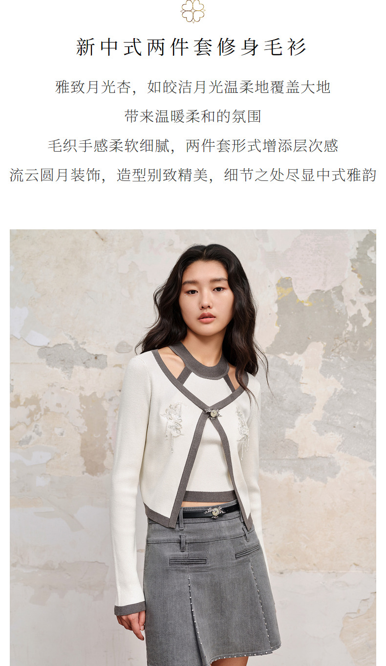 【商场同款】MAXRIENY国风新中式修身针织毛衫修身上衣格雷系穿搭(货号:MC88SW515)