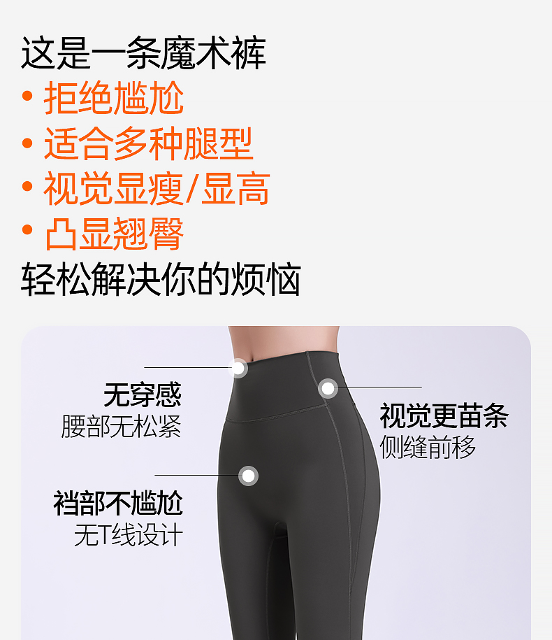 梵美人 F8135 瑜伽九分裤 莱卡云感 后腰口袋 无尴尬线