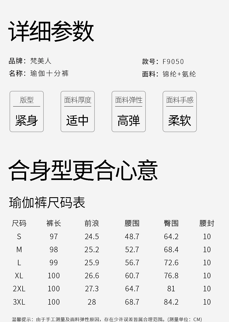 梵美人 F8111 瑜伽九分裤 无尴尬线 无松紧【尼龙66金标莱卡】
