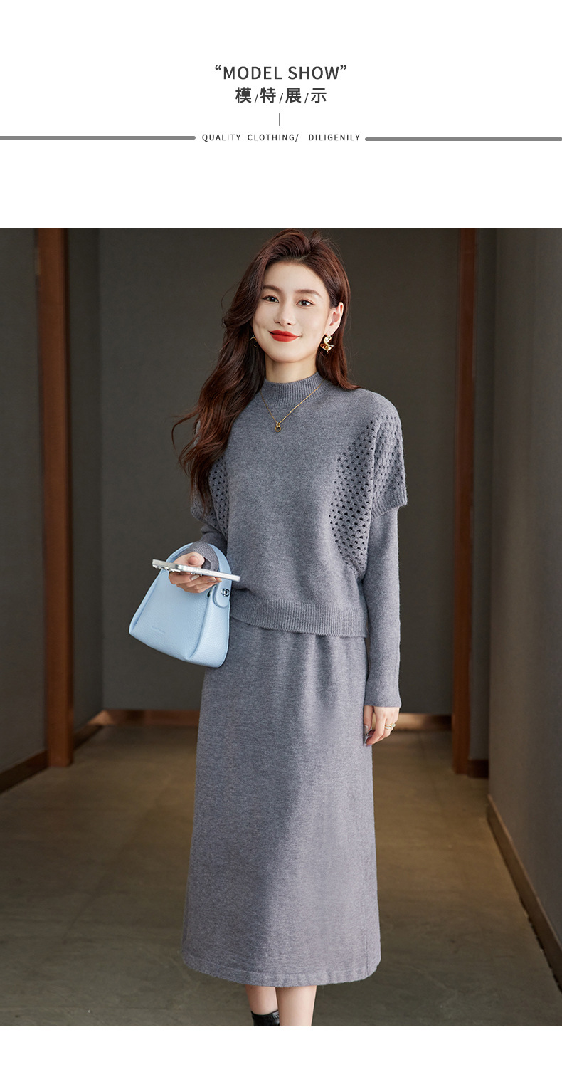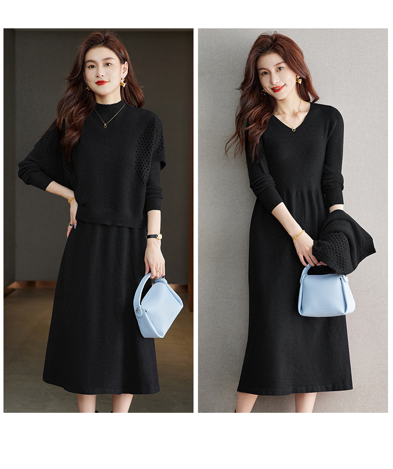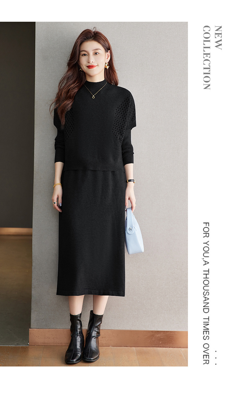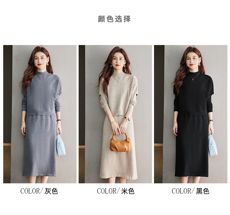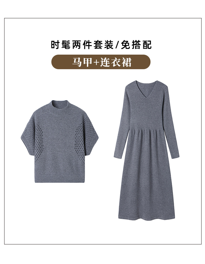 CC-22-207针织连衣裙女秋冬2024新款两件套装裙半高领毛衣马甲中长款打底裙
