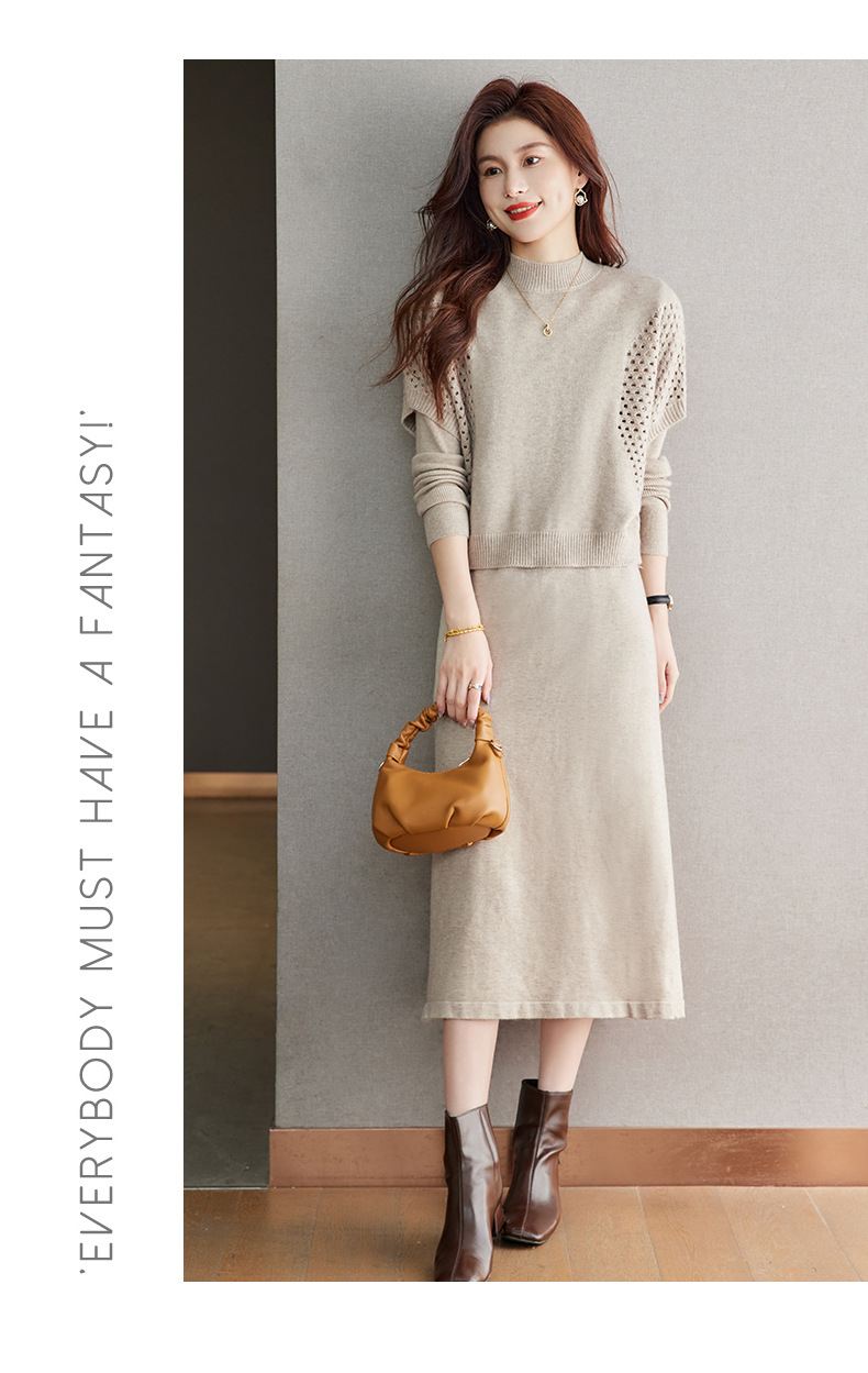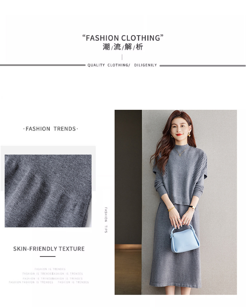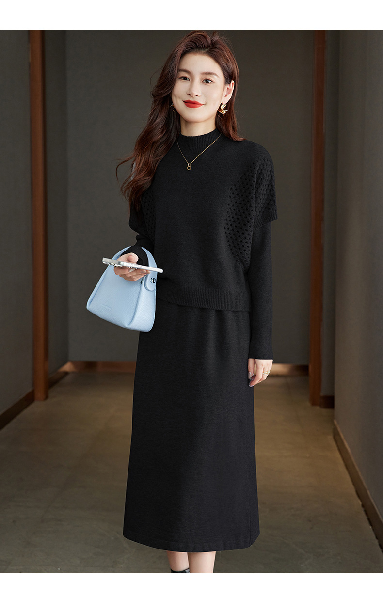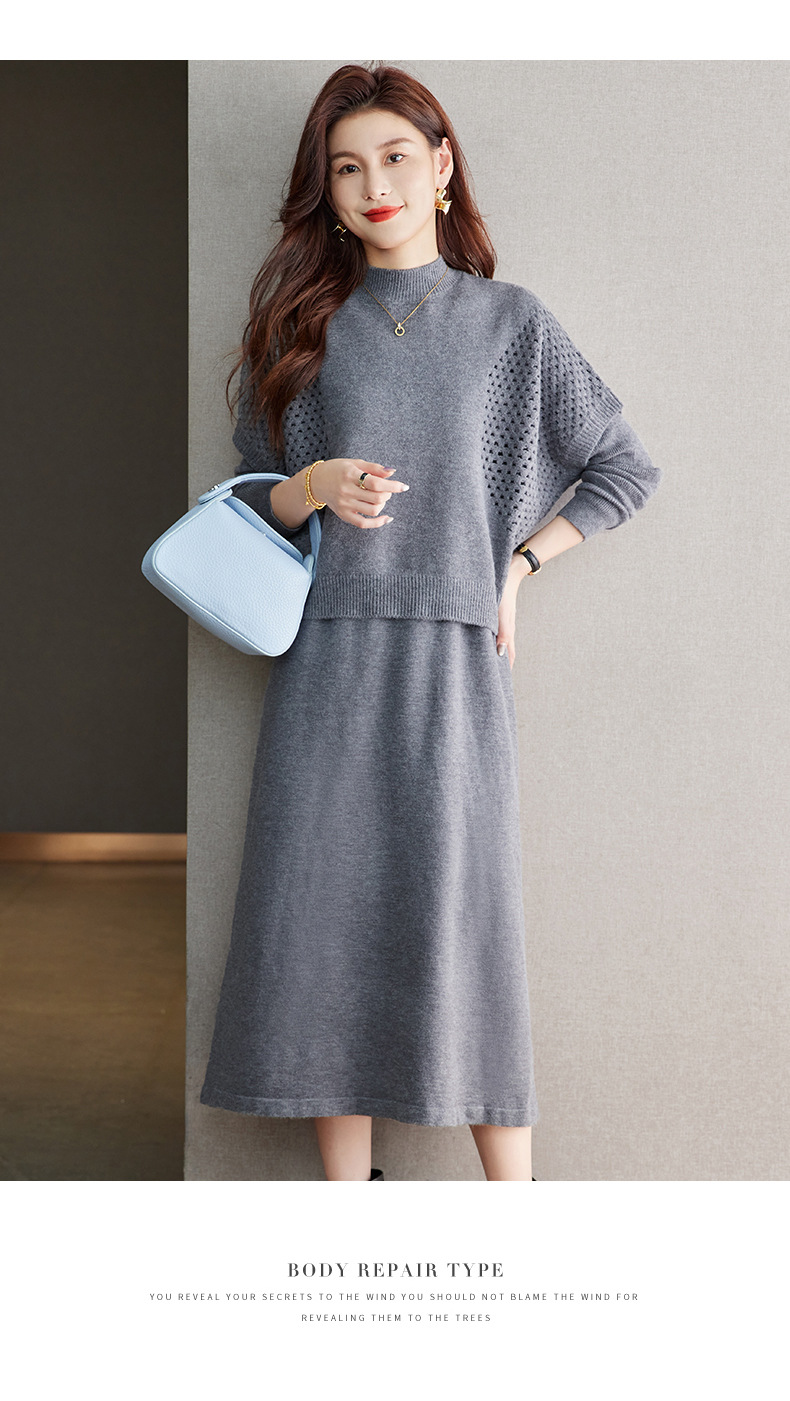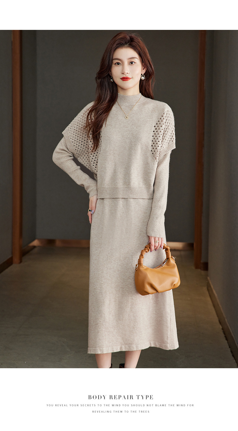 CC-22-207针织连衣裙女秋冬2024新款两件套装裙半高领毛衣马甲中长款打底裙