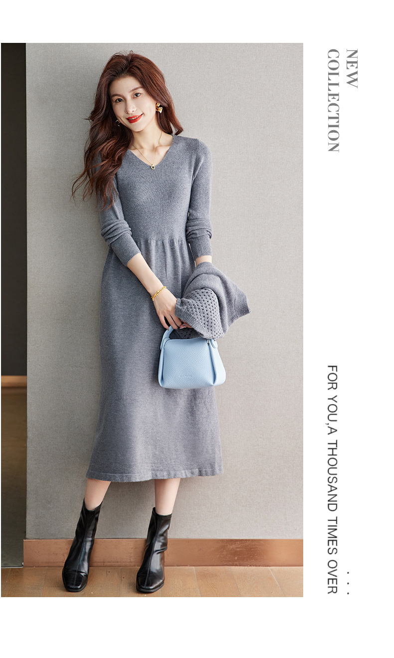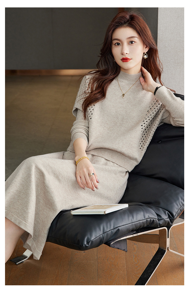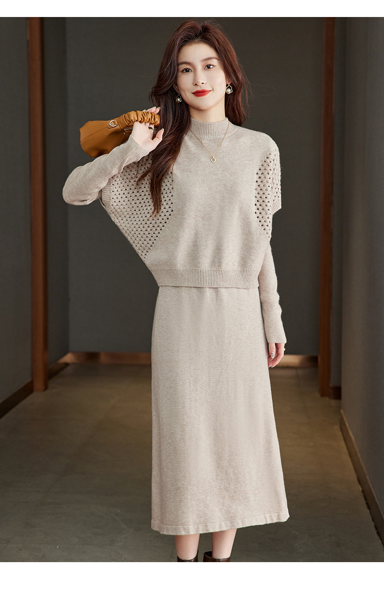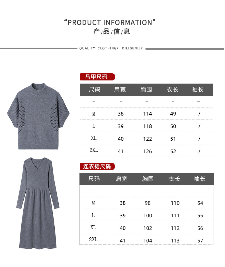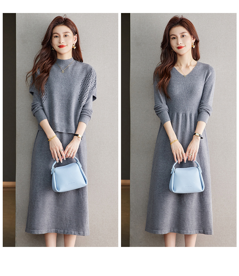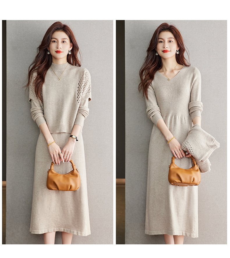 CC-22-207针织连衣裙女秋冬2024新款两件套装裙半高领毛衣马甲中长款打底裙