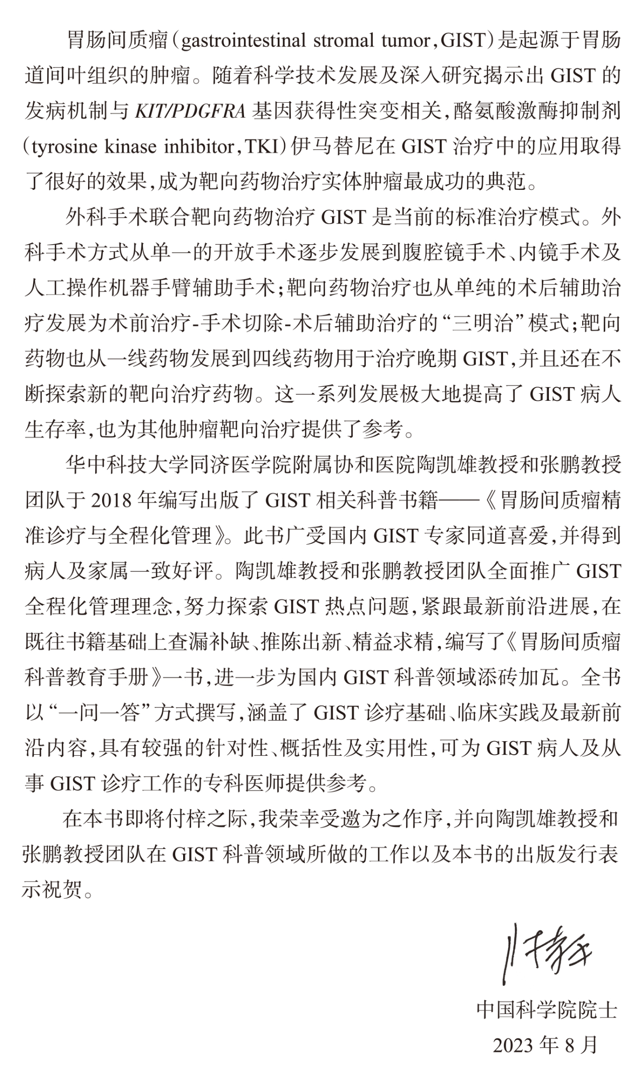 张 鹏,医学博士,Mayo Clinic(妙佑医疗国际)博士后,华中科技大学同济医学院附属协和医院主任医师、副教授、硕士研究生导师。学术任职包括:中国医师协会外科医师分会胃肠间质瘤专家工作组委员、中国抗癌协会胃肠间质瘤专业委员会委员兼MDT学组副组长、中国临床肿瘤学会胃肠间质瘤专家委员会委员、中国研究型医院学会微创外科学专业委员会委员、湖北省医学会普通外科分会委员、湖北省抗癌协会胃肠间质瘤专业委员会常委。