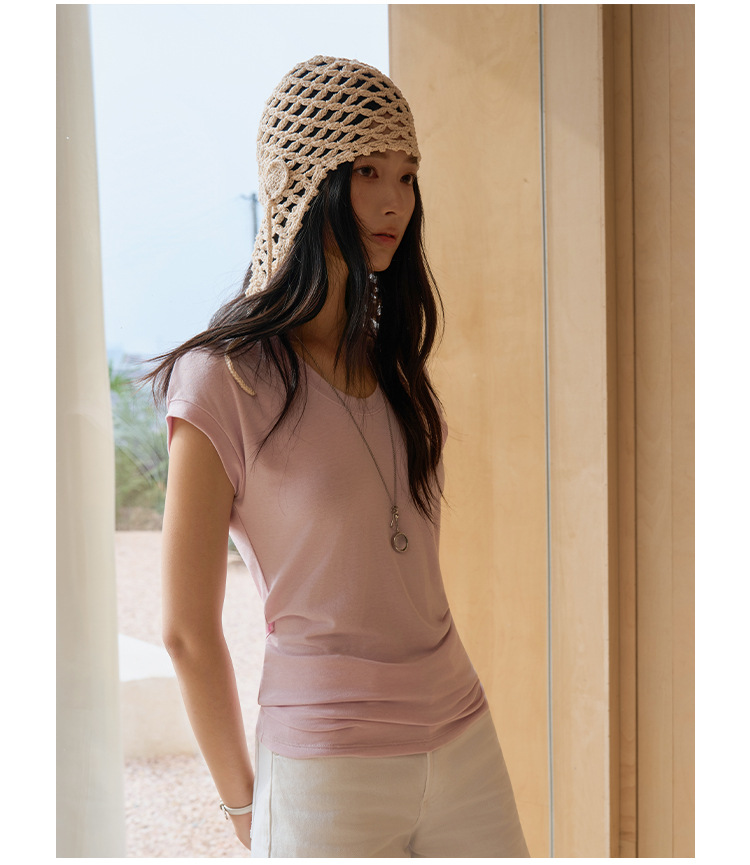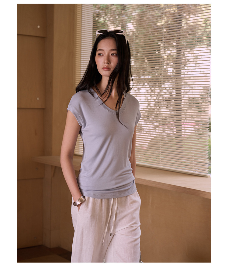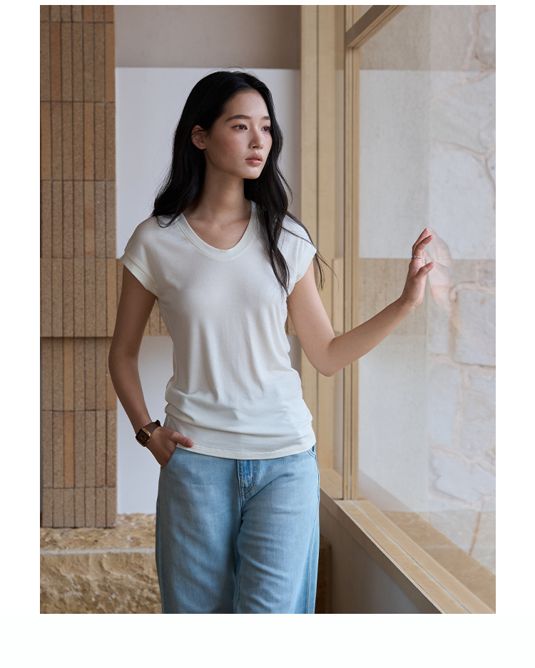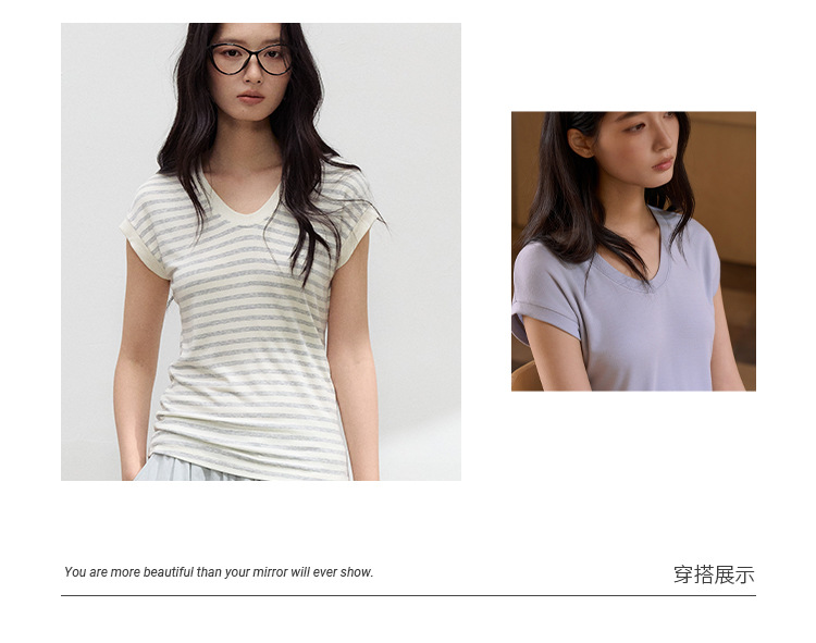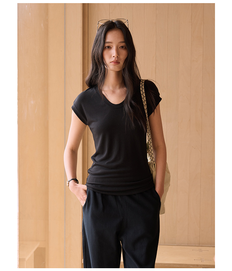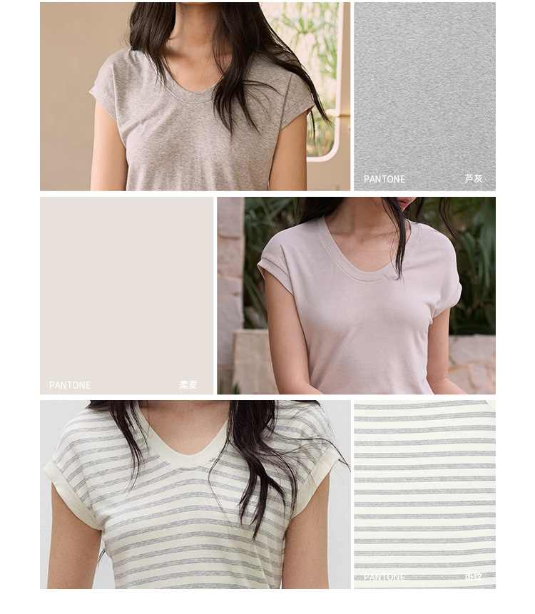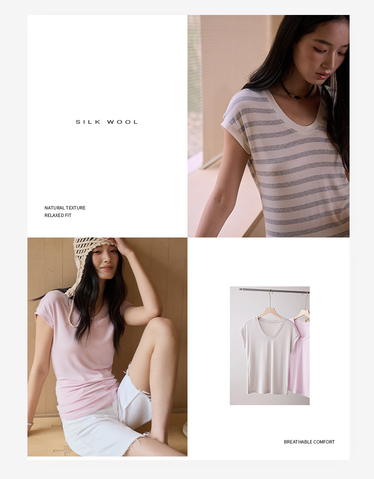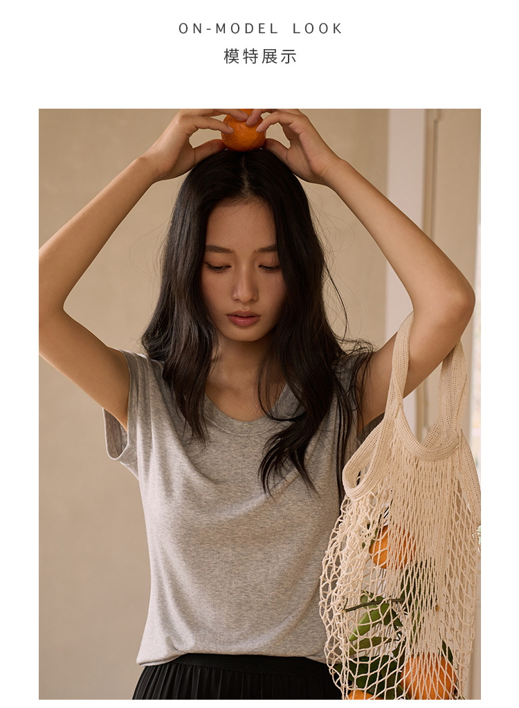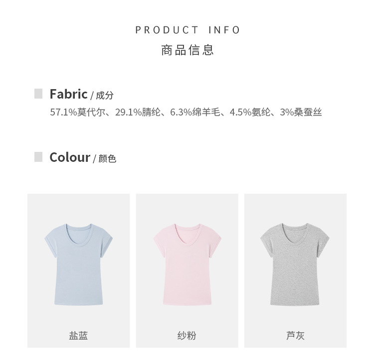 【2026夏季新品】蚕丝羊毛・蛋领短袖 春夏蚕丝T恤 天丝莫代尔打底衫 修身显瘦落肩上衣