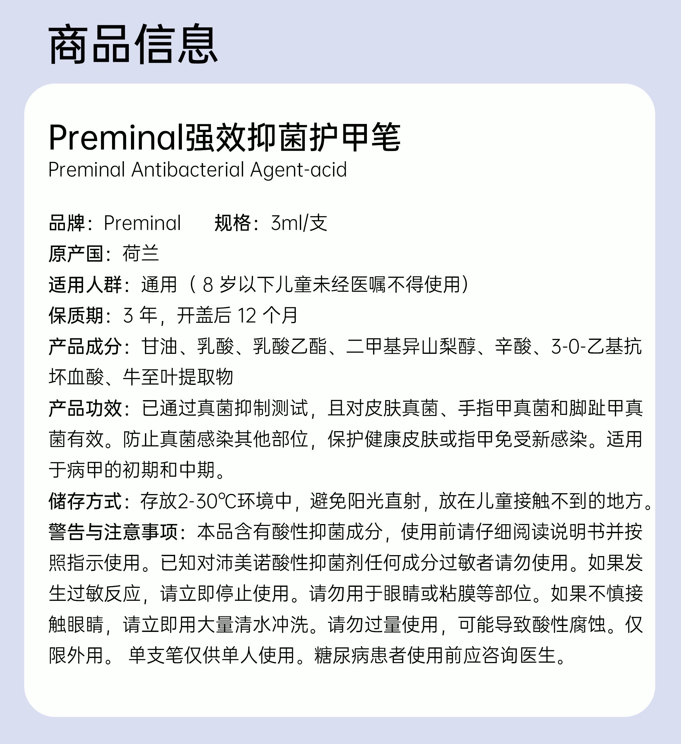 【荷兰原装进口 生物离子渗透技术】荷兰preminal抑菌液 专为手足健康研发