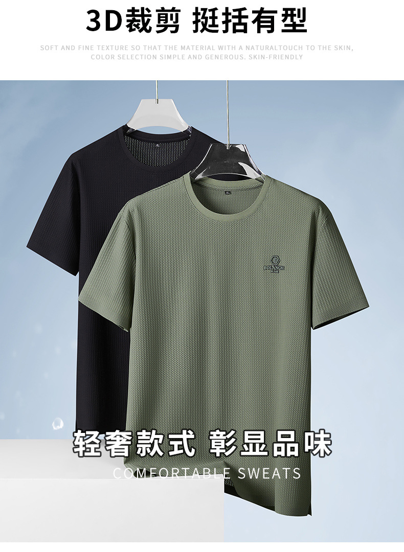 【冰丝】【DDP】大依优型大码短袖T恤休闲圆领冰丝透气男士加肥加大码运动半袖上衣胖子