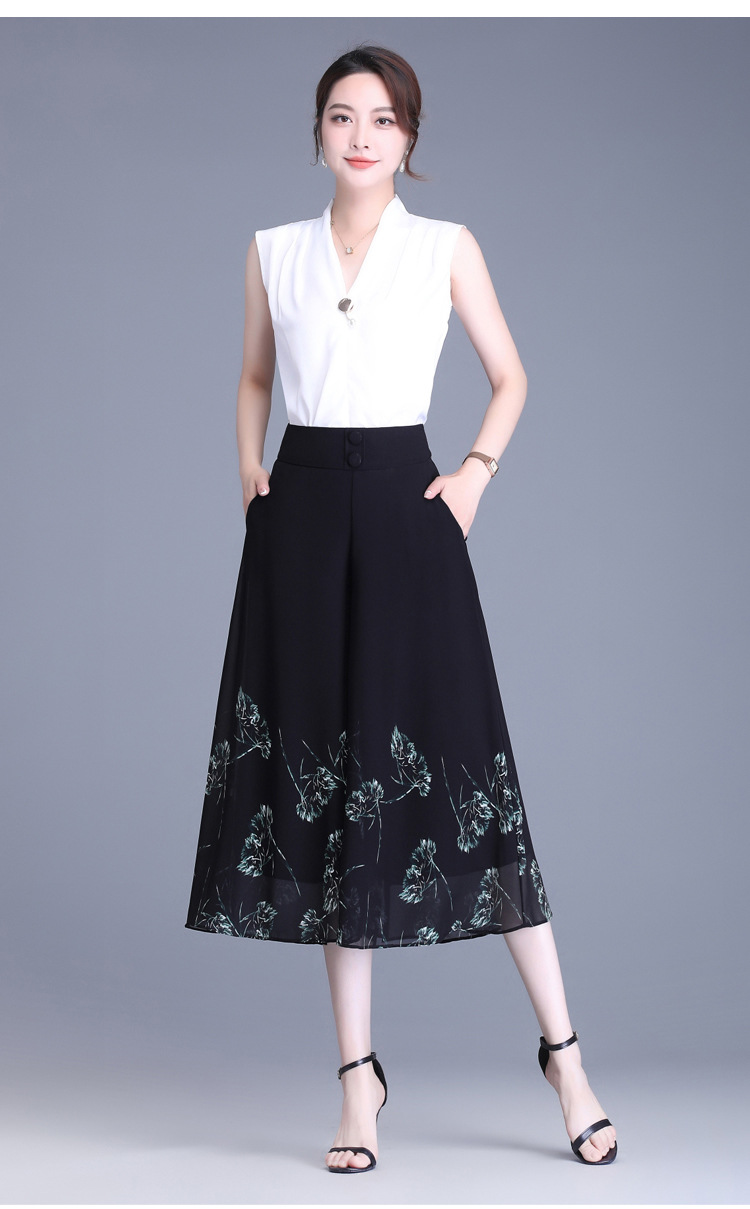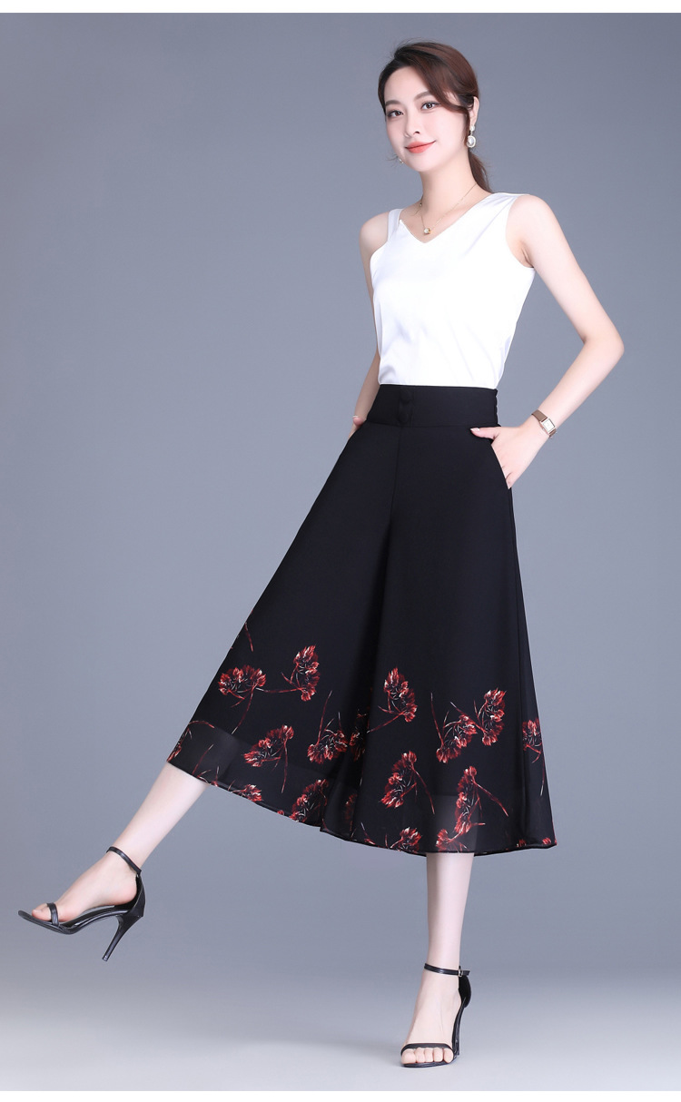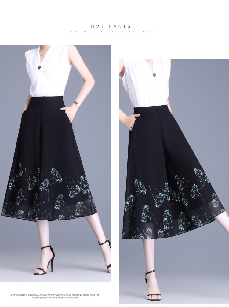 雪纺阔腿裤宽松休闲裤,印花裤七分裙裤MYX-5876