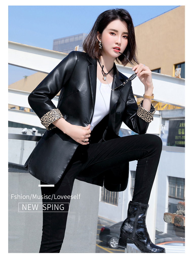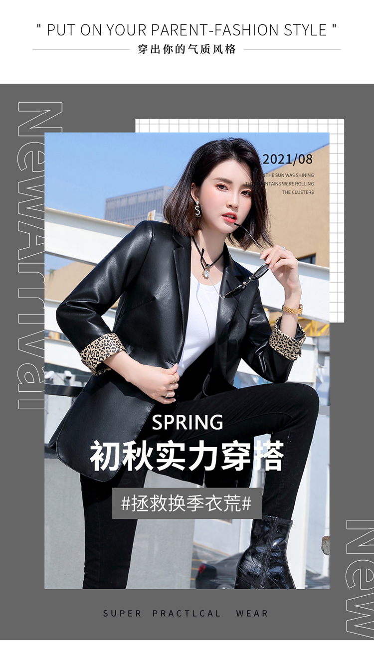 秋季黑色皮衣韩版宽松机车拼接显瘦皮外套 HR-WW8523-19