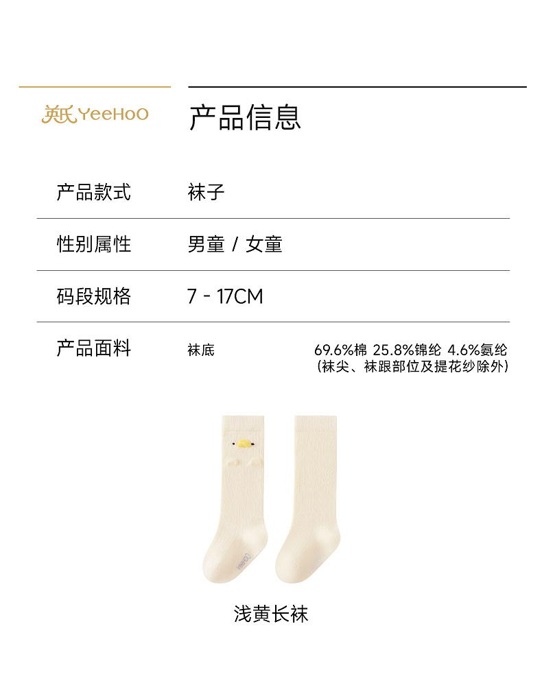 【商场同款】英氏儿童袜子赛柔丝长袜四季宝宝袜子防滑袜可爱卡通