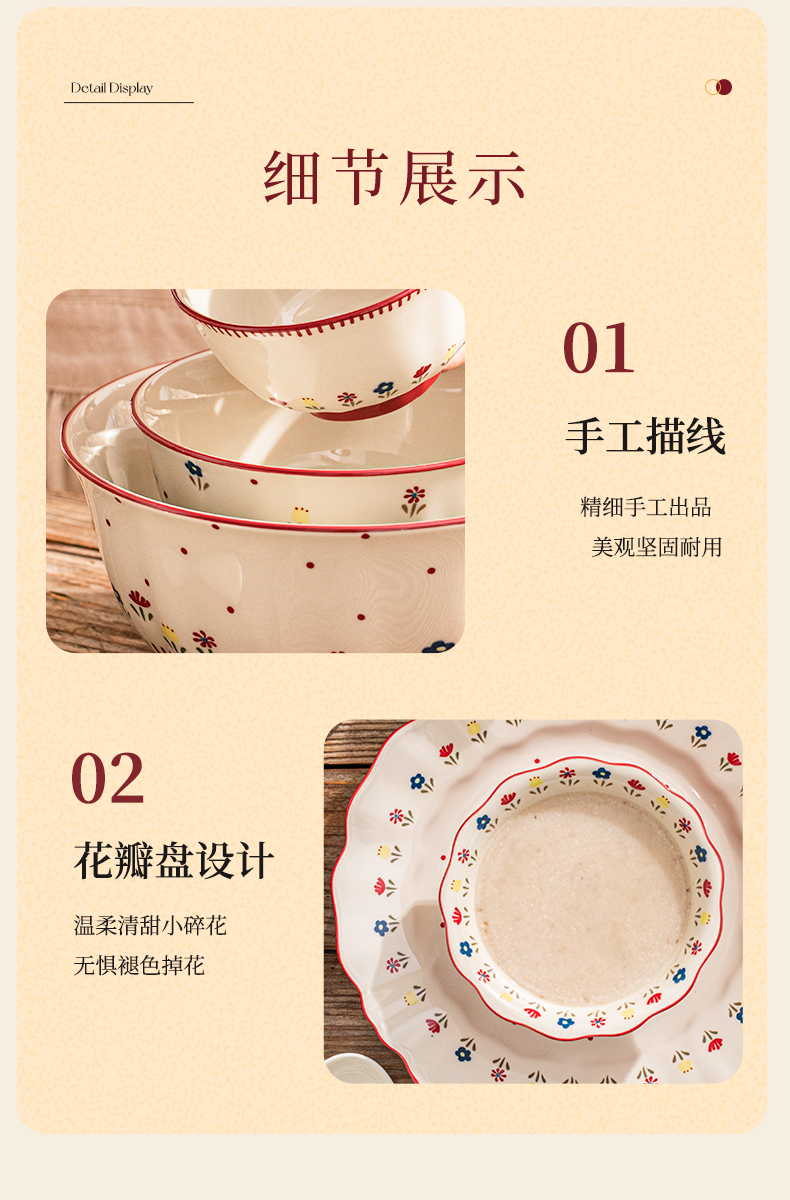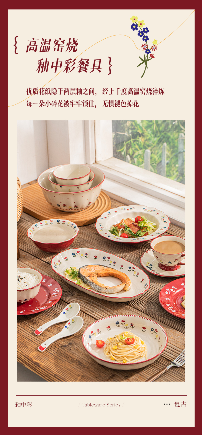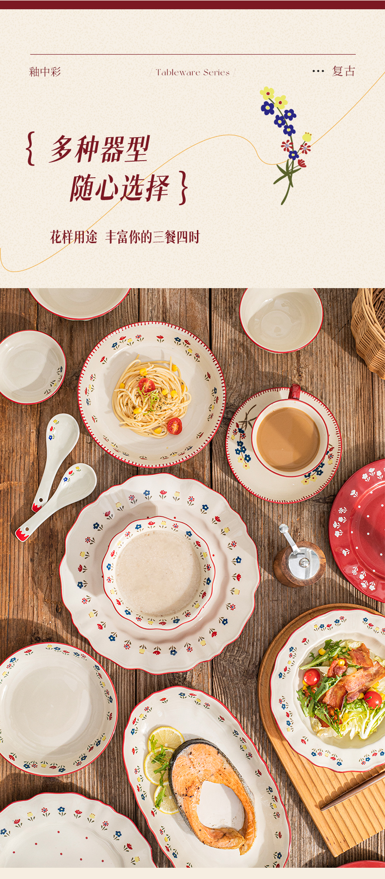 【顺祥陶瓷】碗碟套装家用中式餐具 釉中彩 拉夫蕾