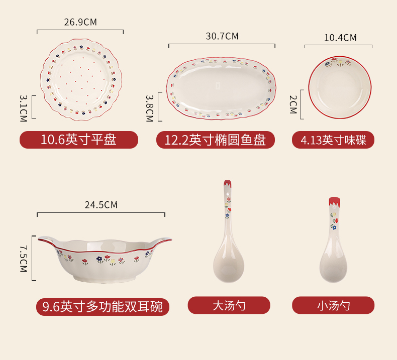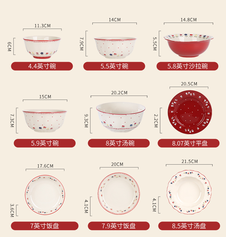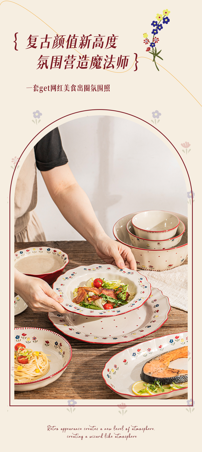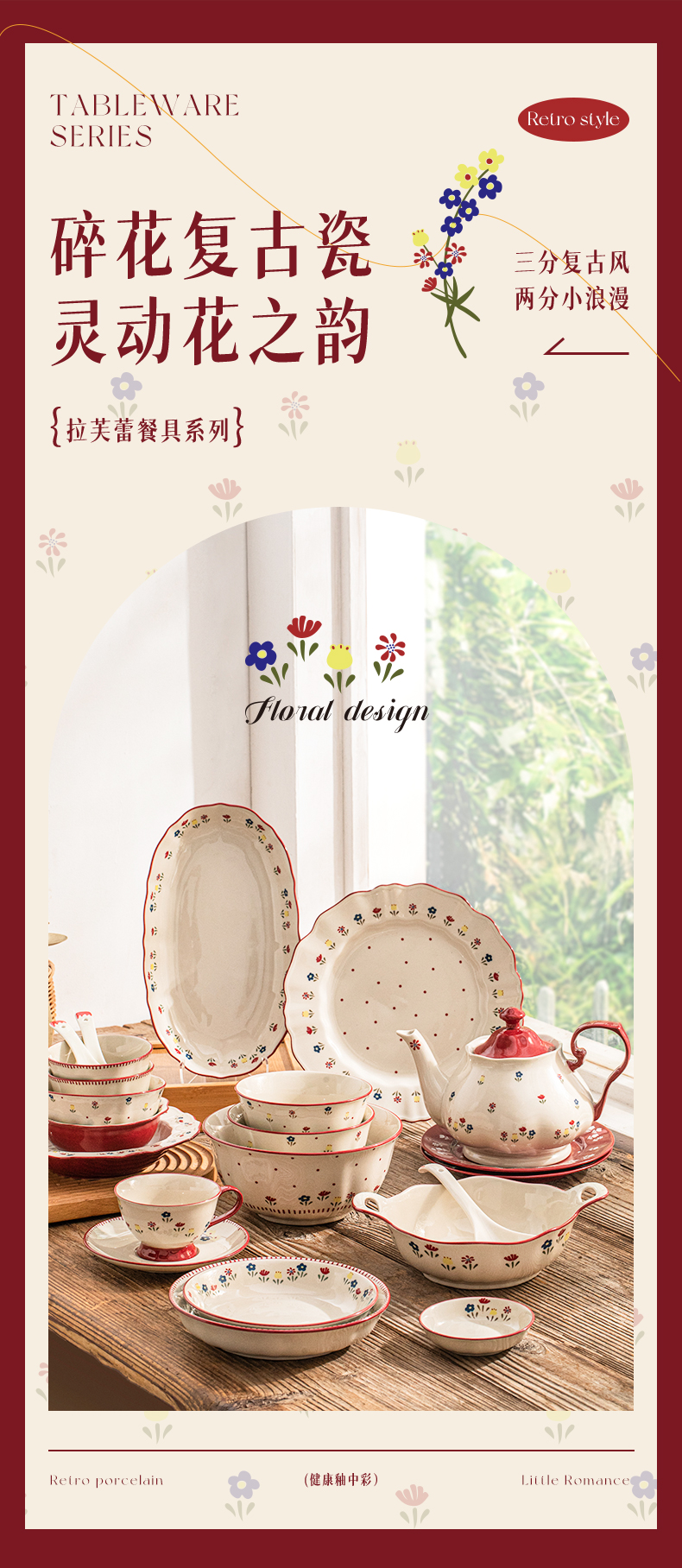 【顺祥陶瓷】碗碟套装家用中式餐具 釉中彩 拉夫蕾