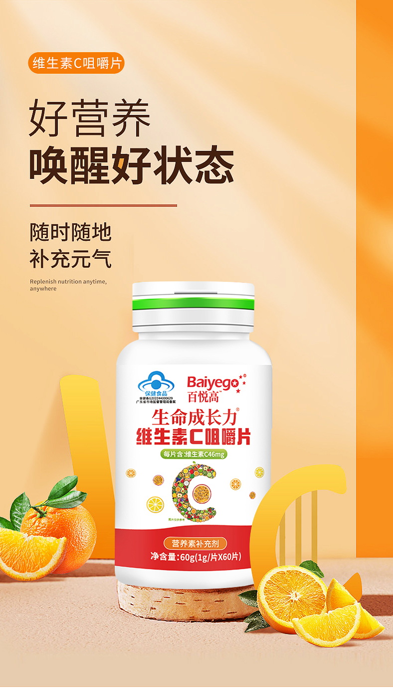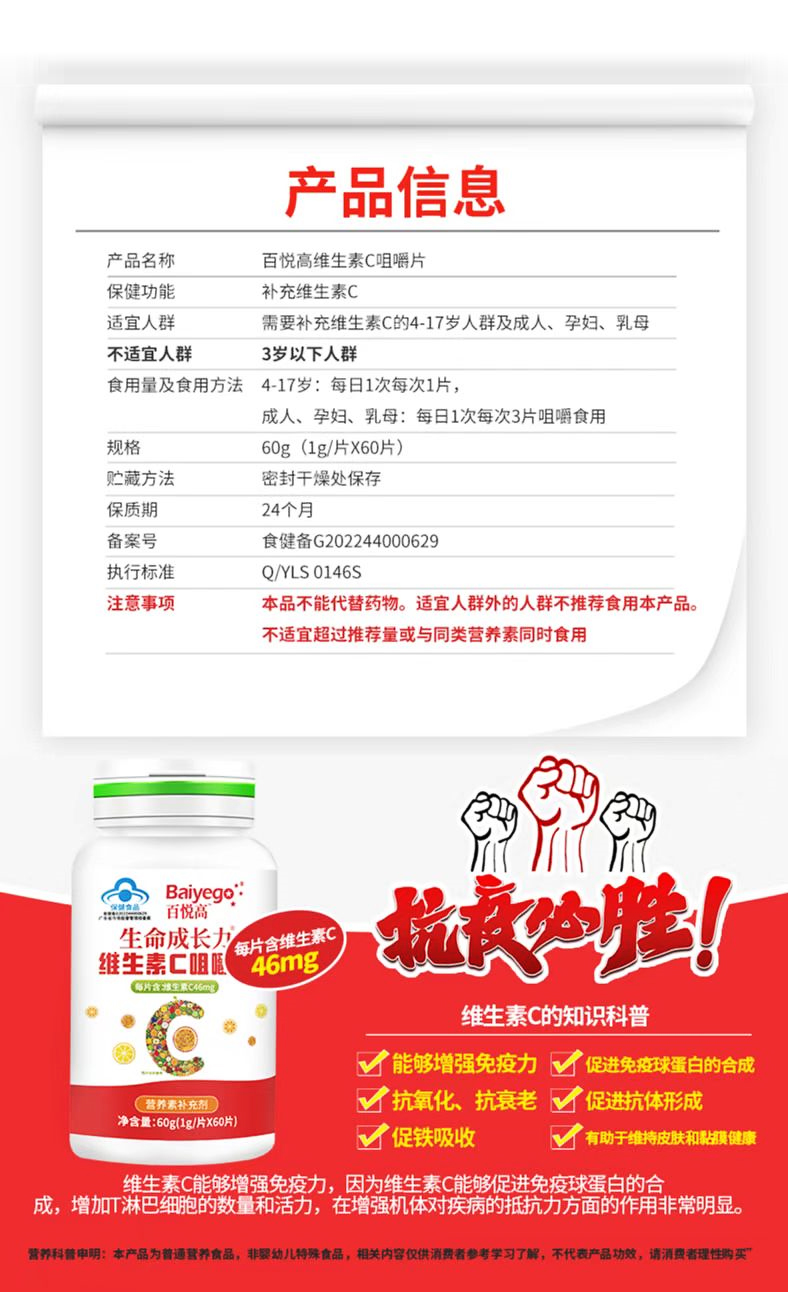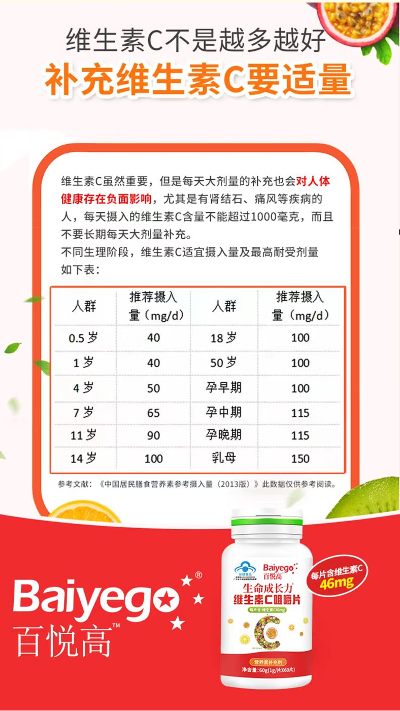 【有效期至2024.11】百悦高 生命成长力维生素C咀嚼片 60片/瓶