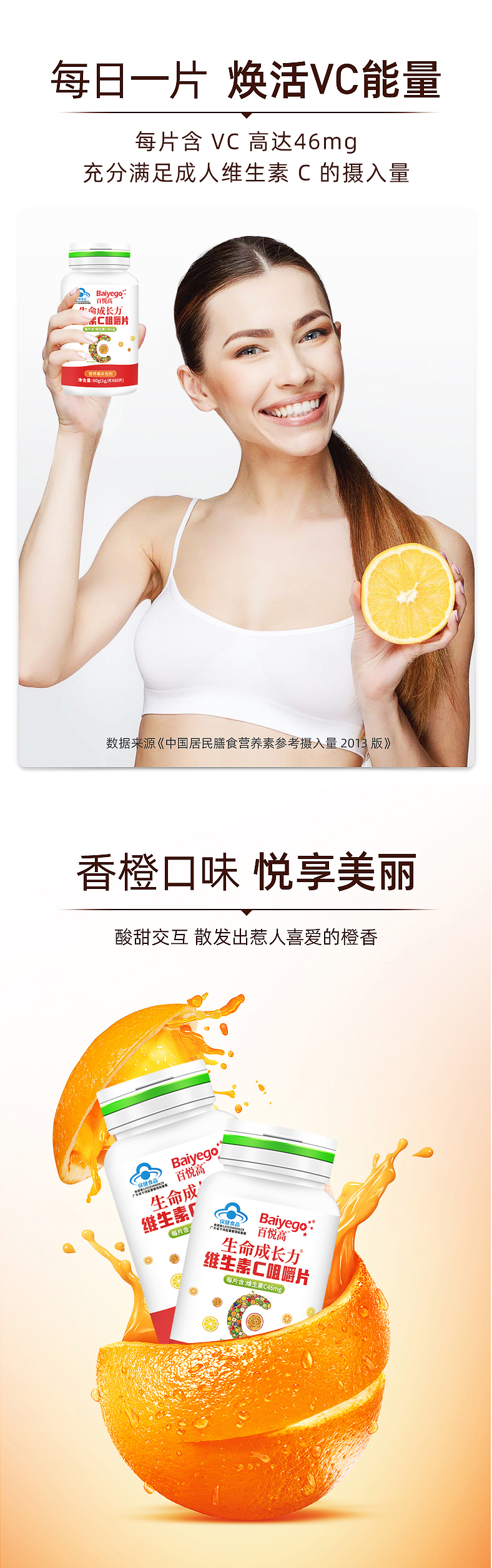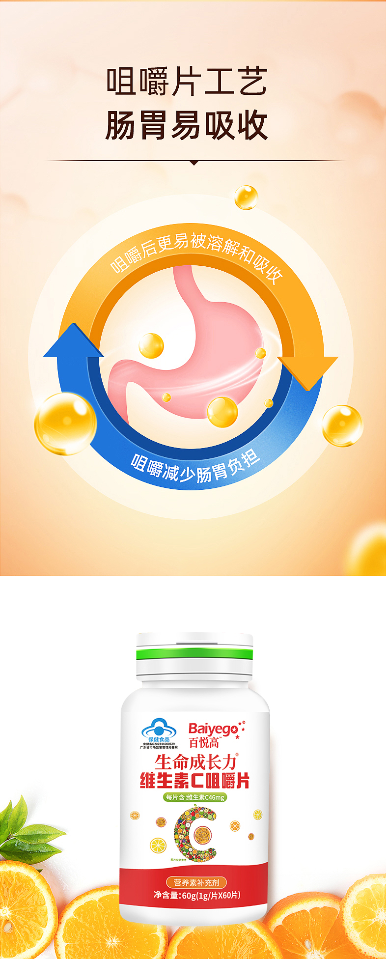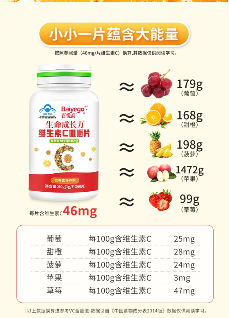 【有效期至2024.11】百悦高 生命成长力维生素C咀嚼片 60片/瓶