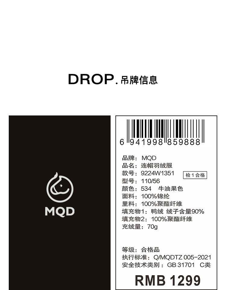 【MQD】童装男大童冬季保暖时尚连帽羽绒服