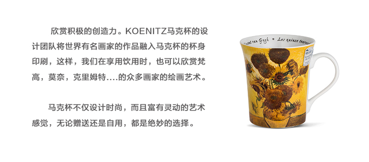 德国原产Könitz陶瓷水杯茶杯马克杯 梵高之花