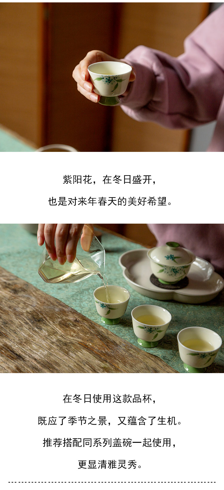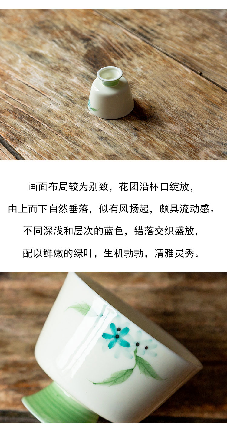 茶香记 手绘紫阳花小高足雅杯 清新灵秀 古典优雅 小巧可爱