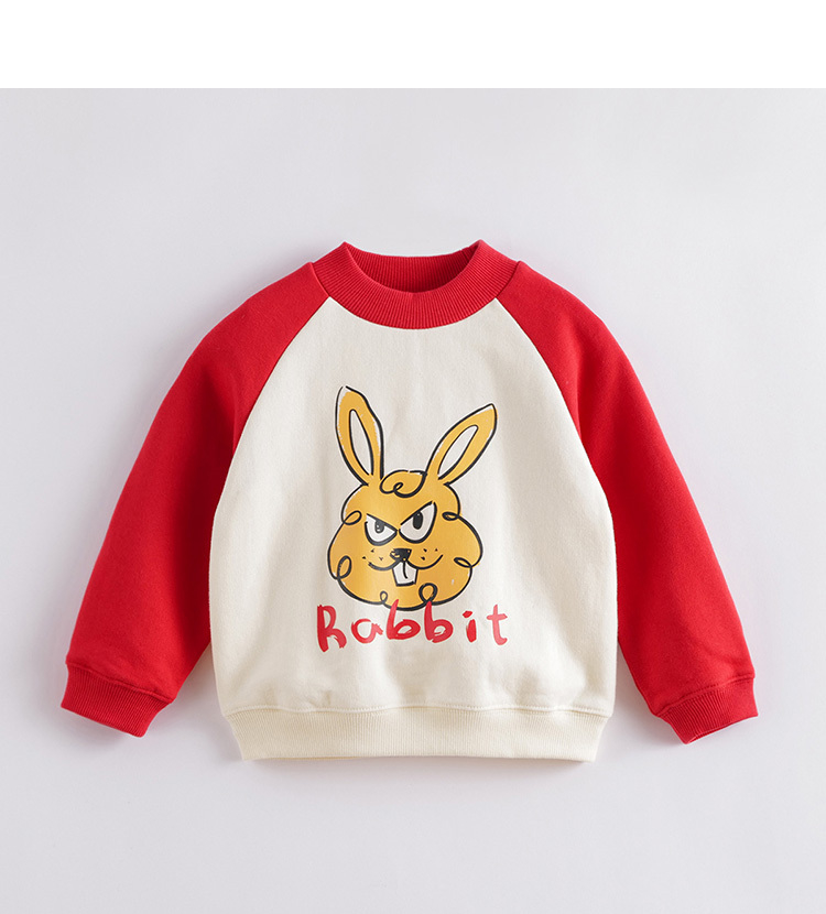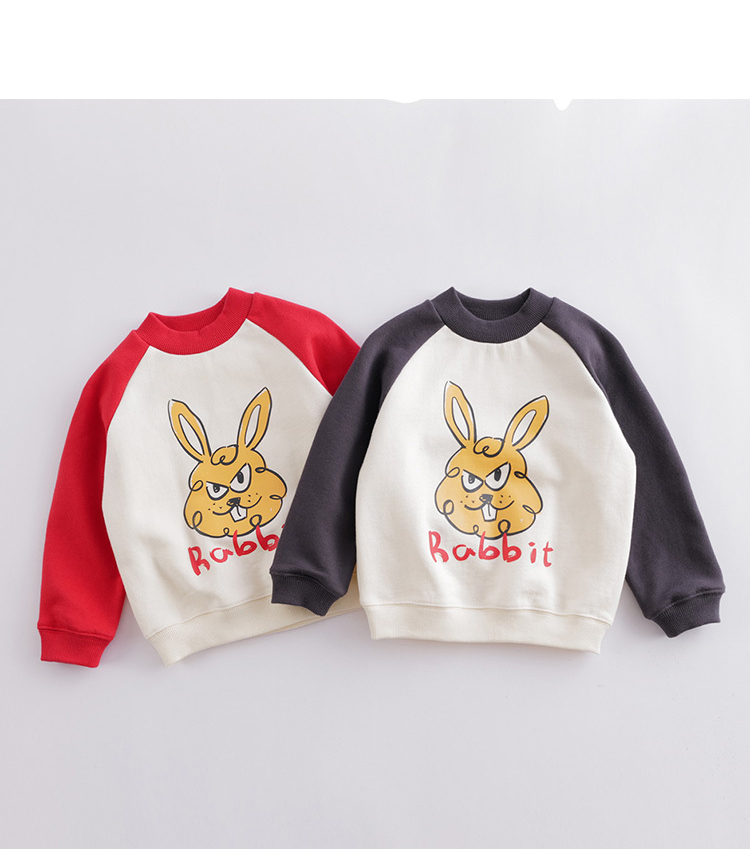 马克珍妮秋装新款 男女童兔子拼色纯棉卫衣 儿童上衣221891