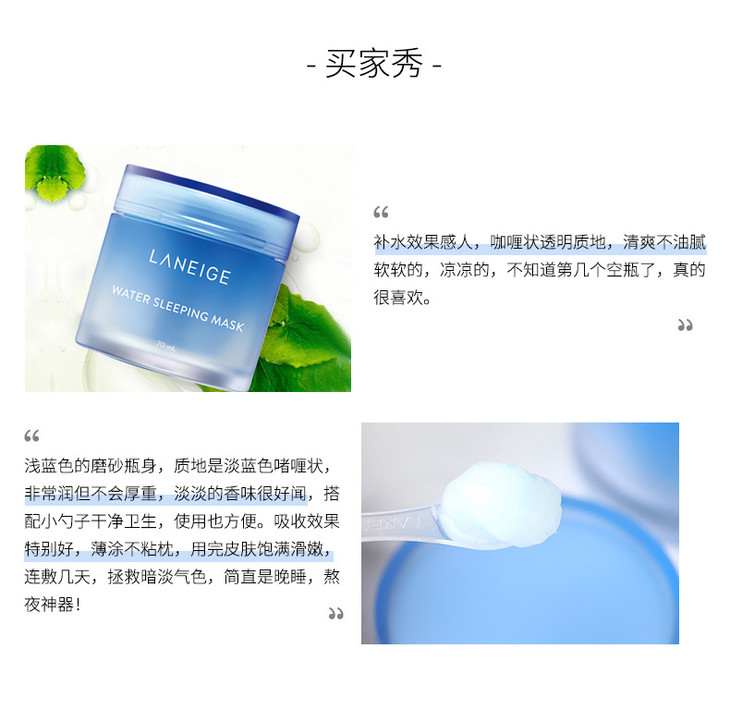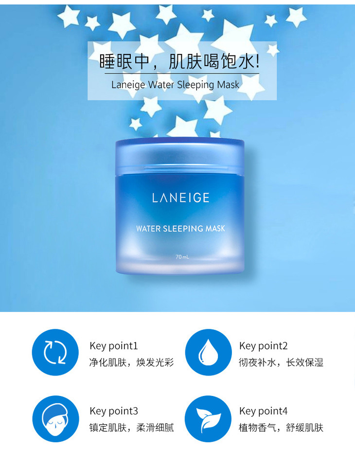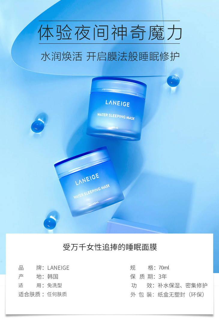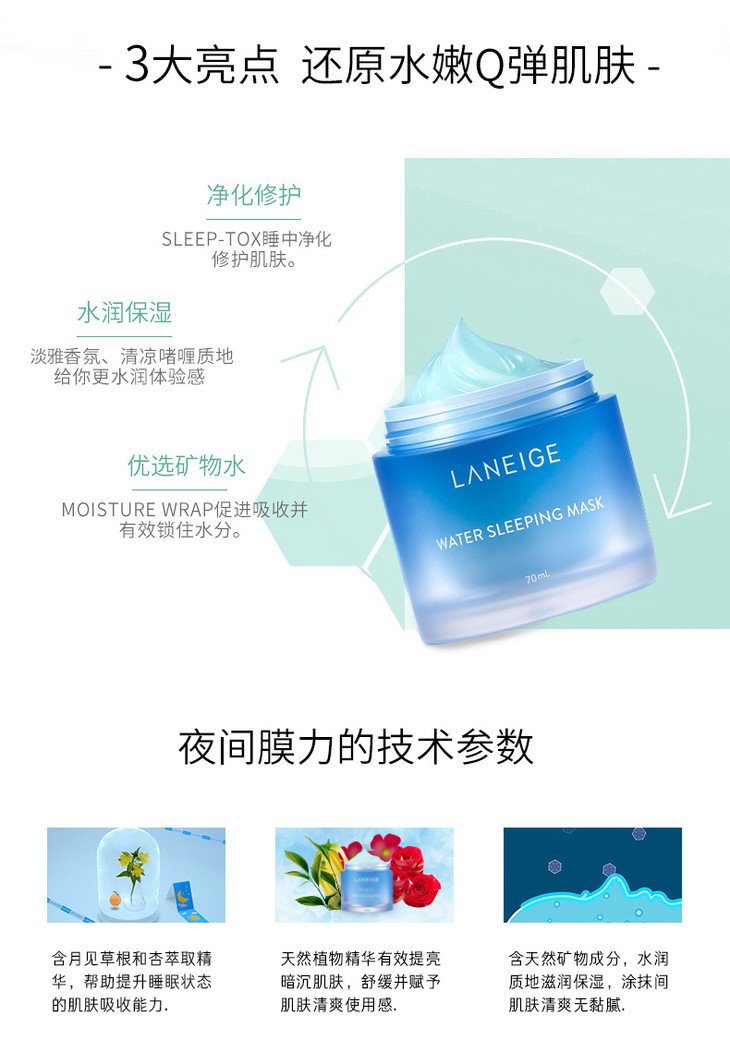 Laneige蘭芝滋潤睡眠面膜70ML(2019年新版) 👉 适合干皮、皮肤干燥缺水使用👍质地细腻,非常好推开,水嫩好吸收不腻💧成分天然,敏感肌宝宝也可以放心使用🌌具有优秀的夜间修护力,早晨起床皮肤也润润滑滑,上妆也更服帖呢🤗