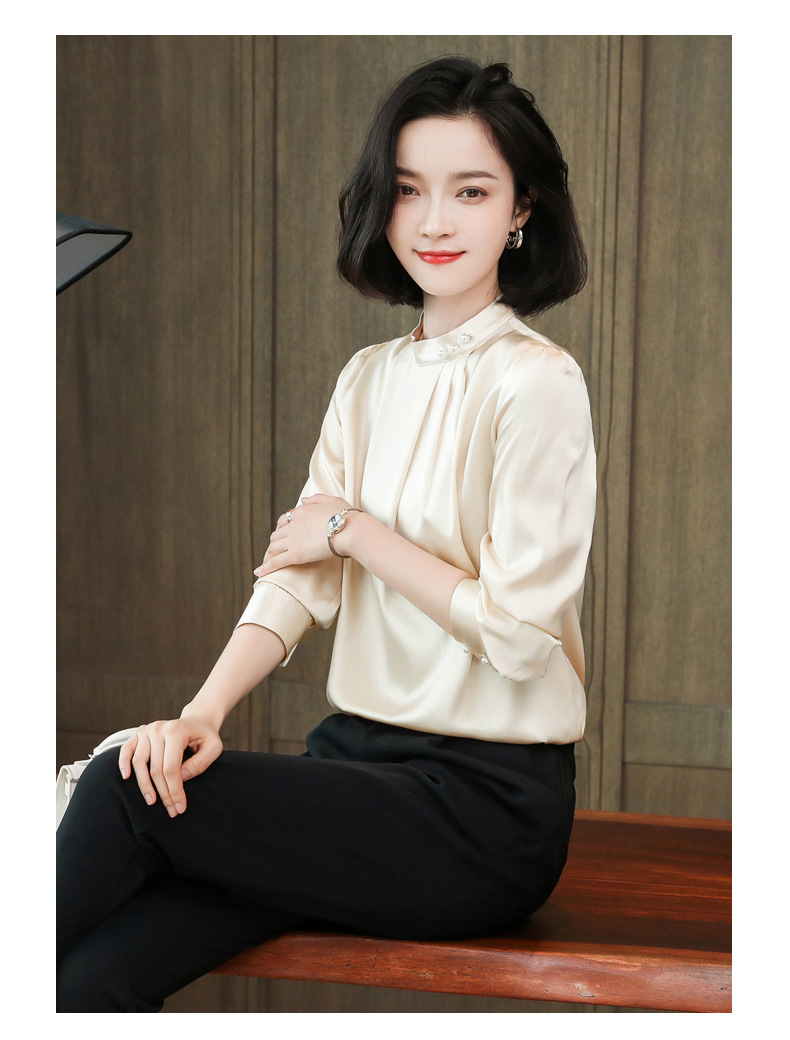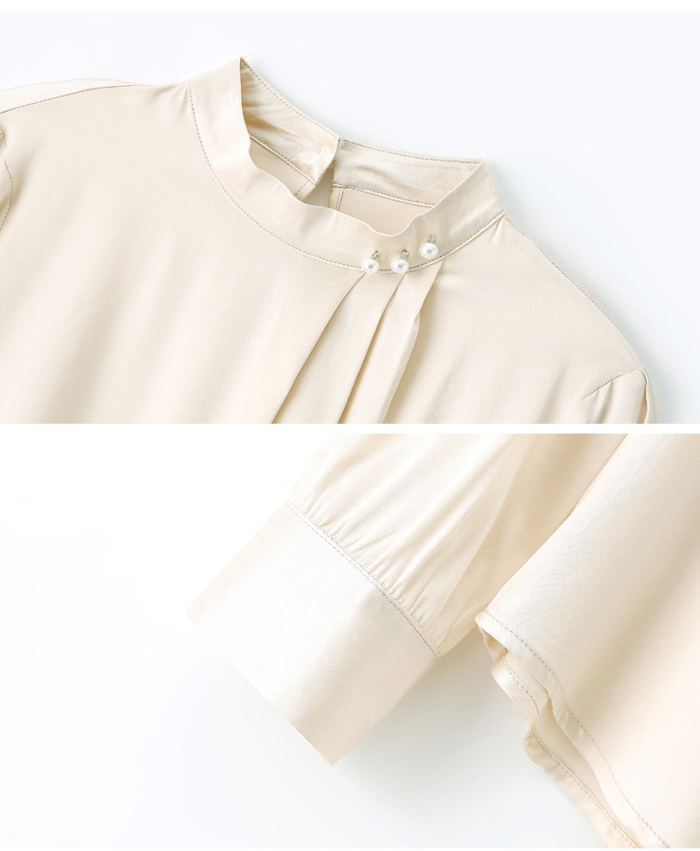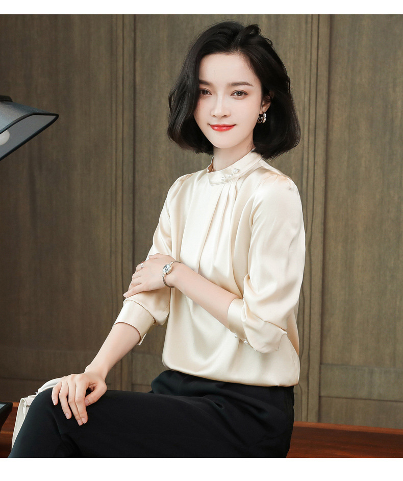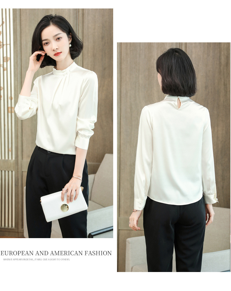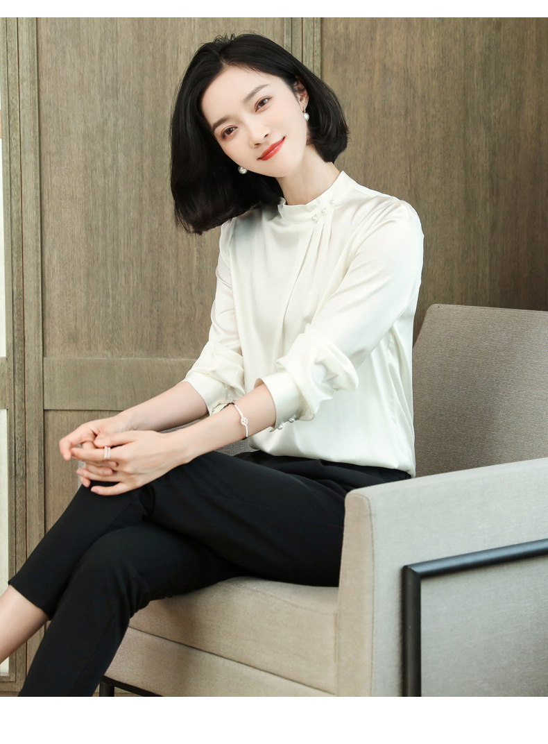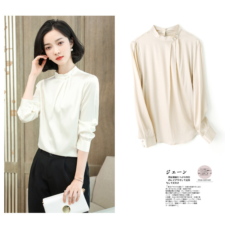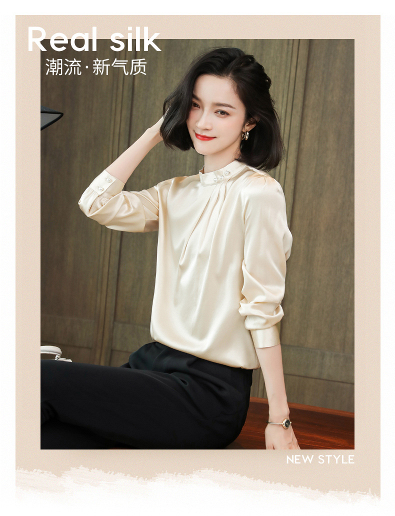 KQ-2026年春季桑蚕丝新款小复古气质立领波点设计感上衣长袖宽松衬衫