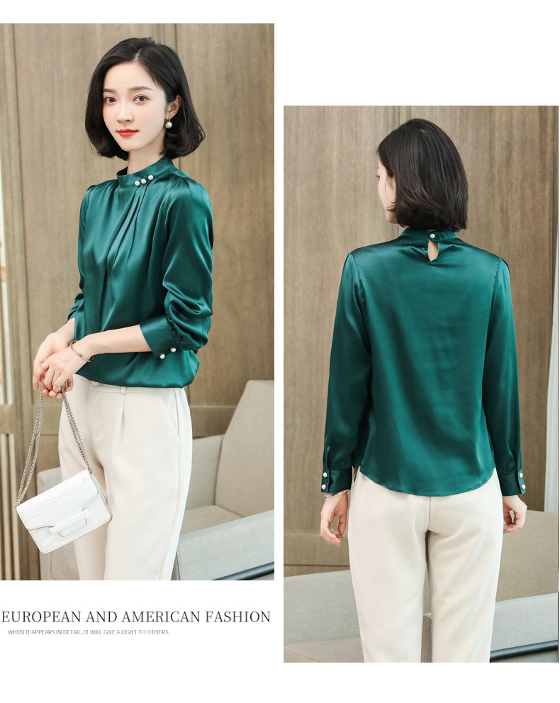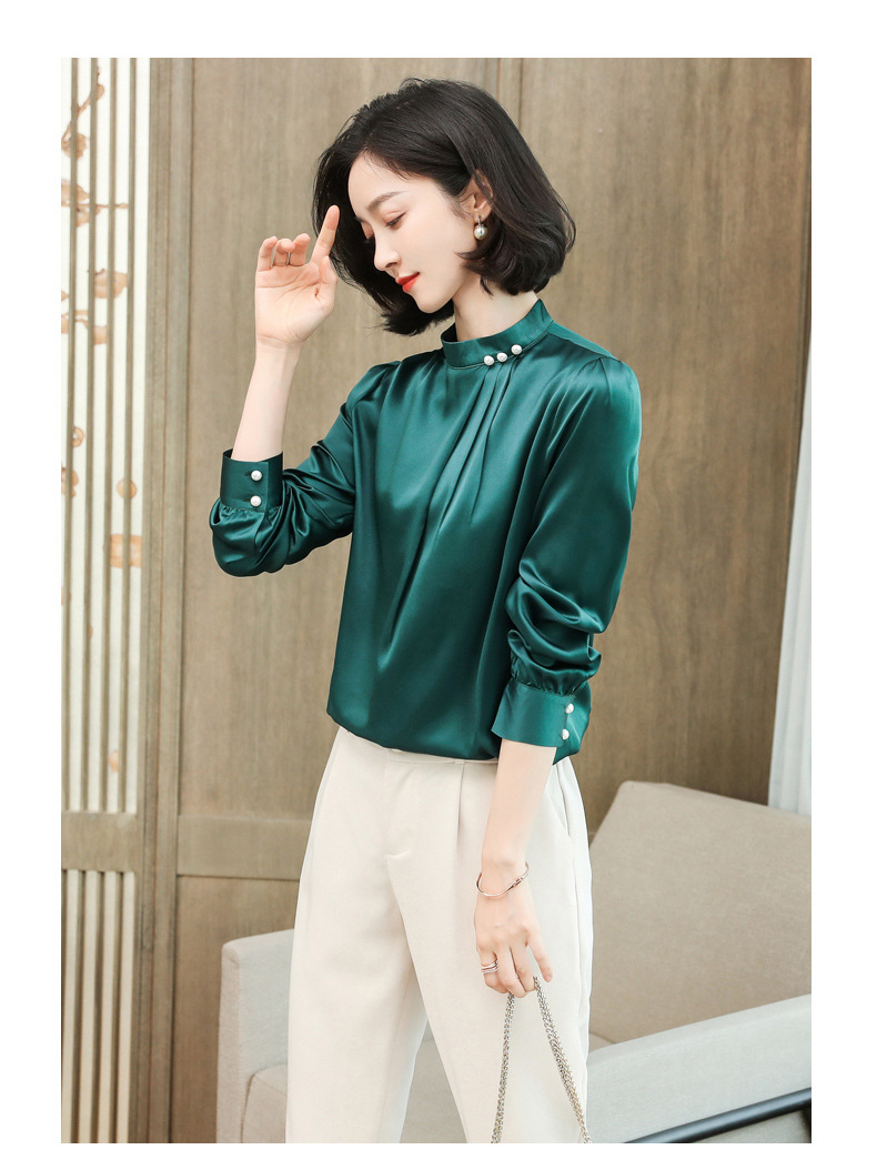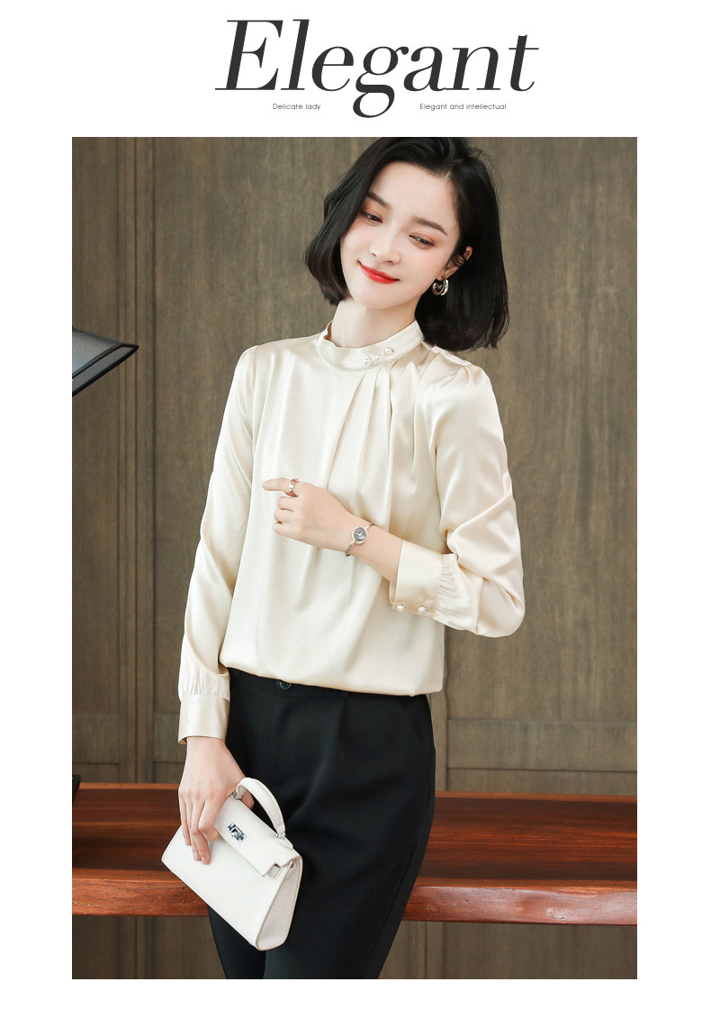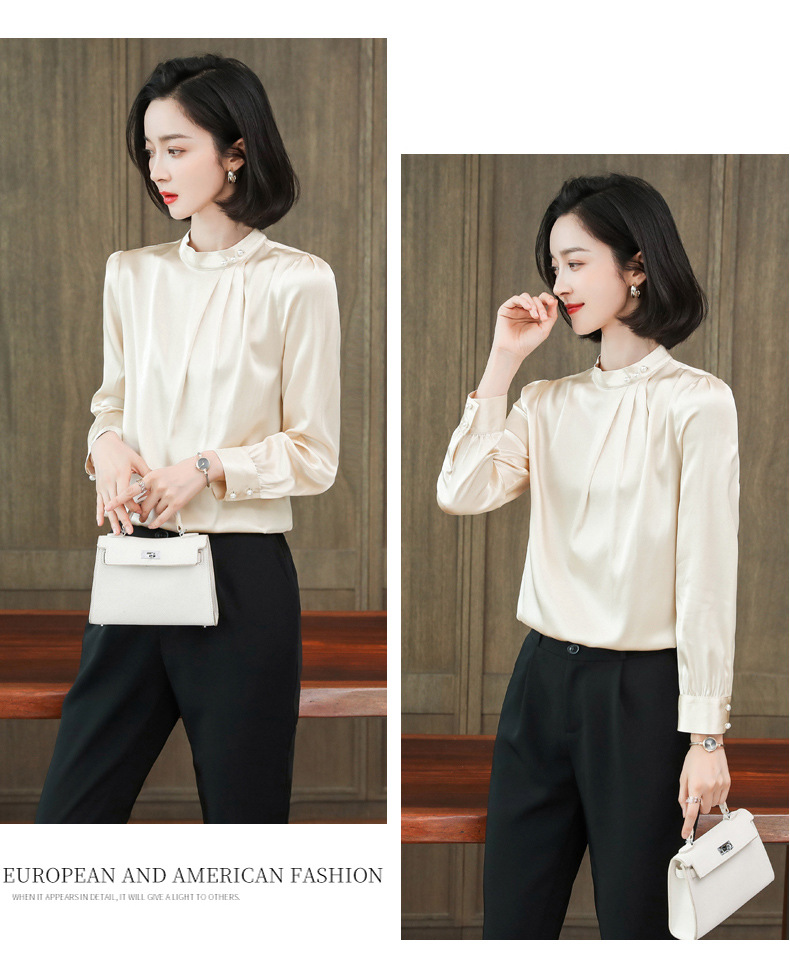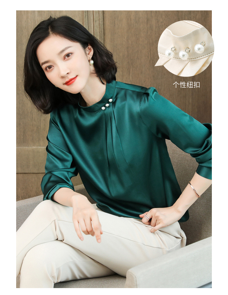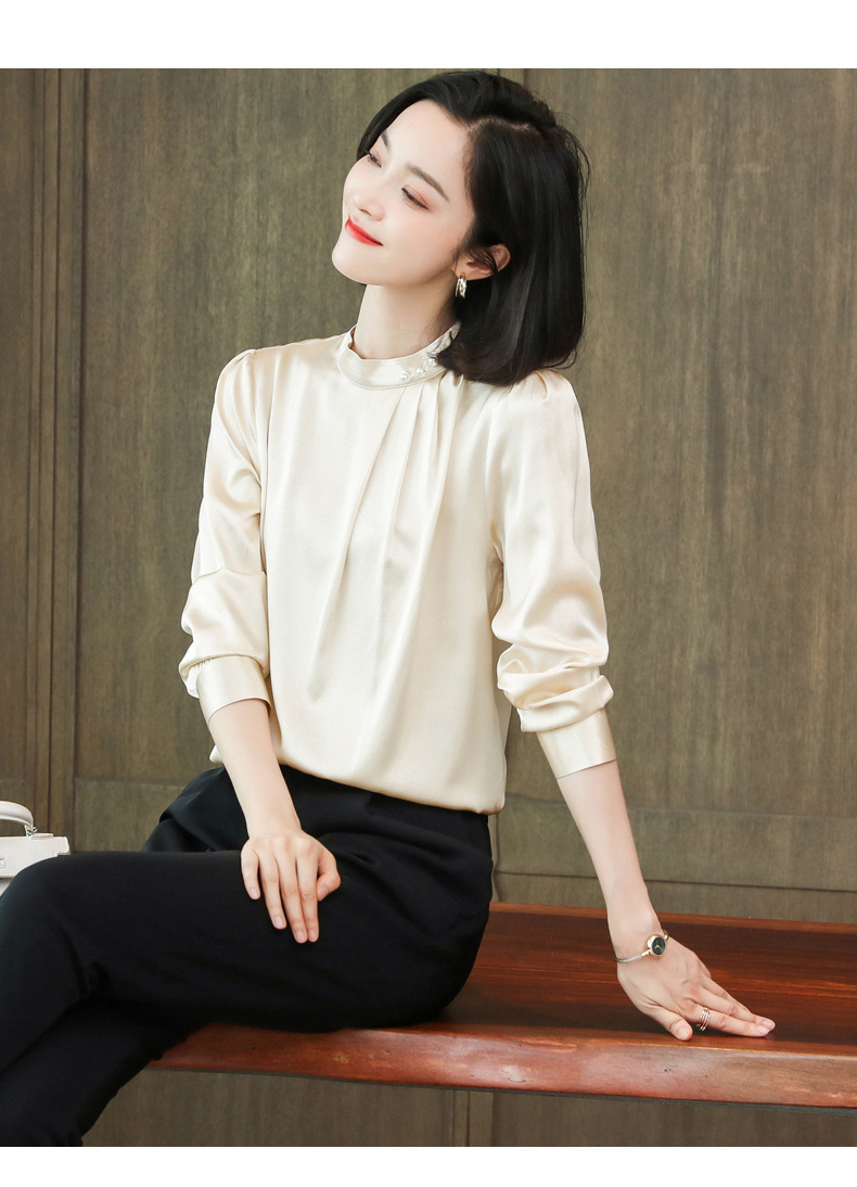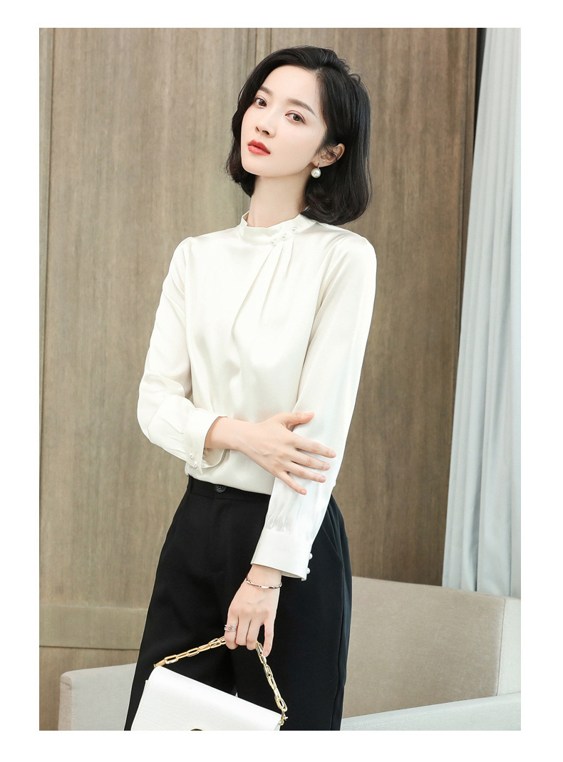 KQ-2026年春季桑蚕丝新款小复古气质立领波点设计感上衣长袖宽松衬衫