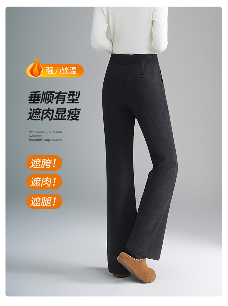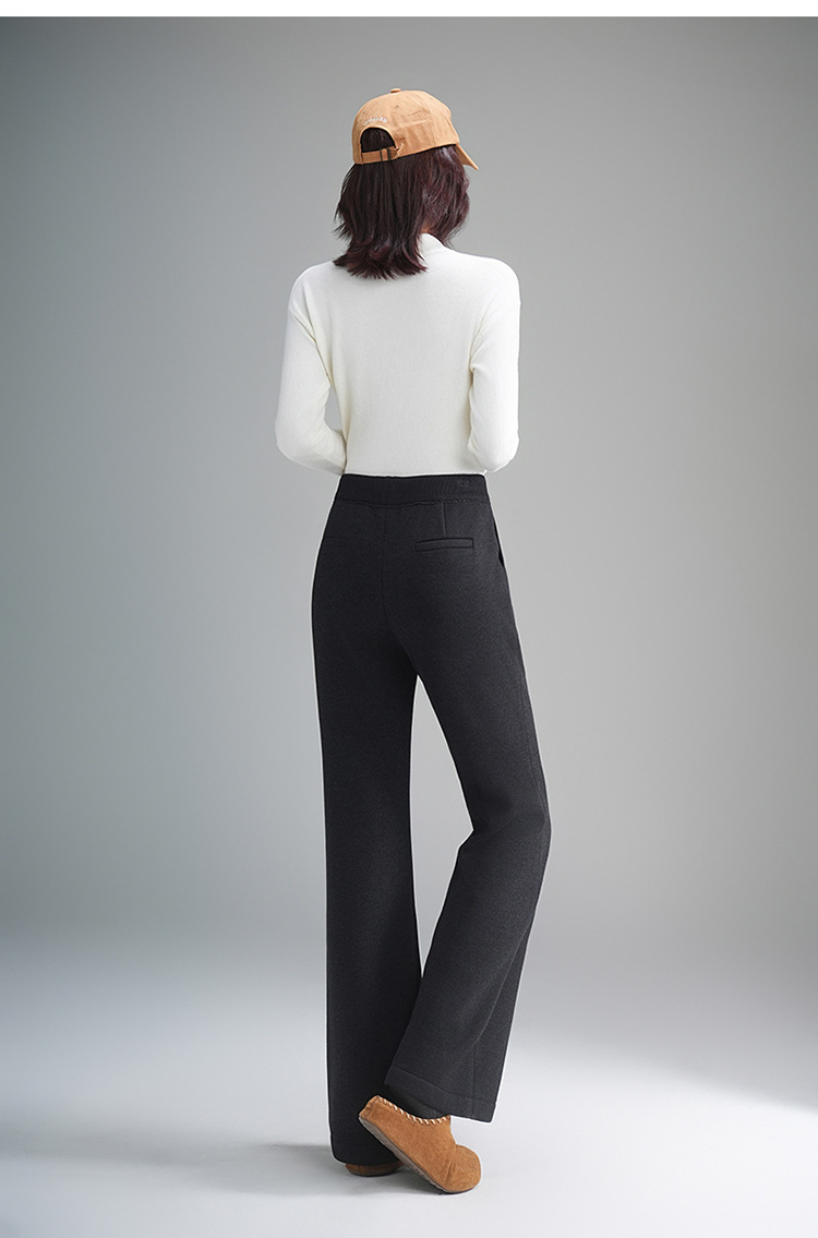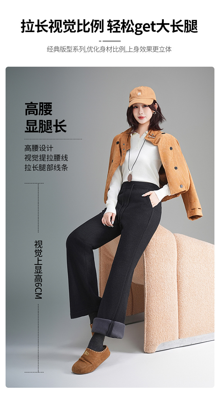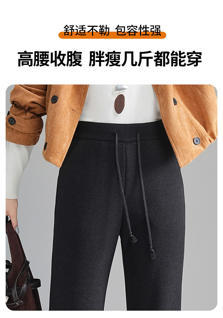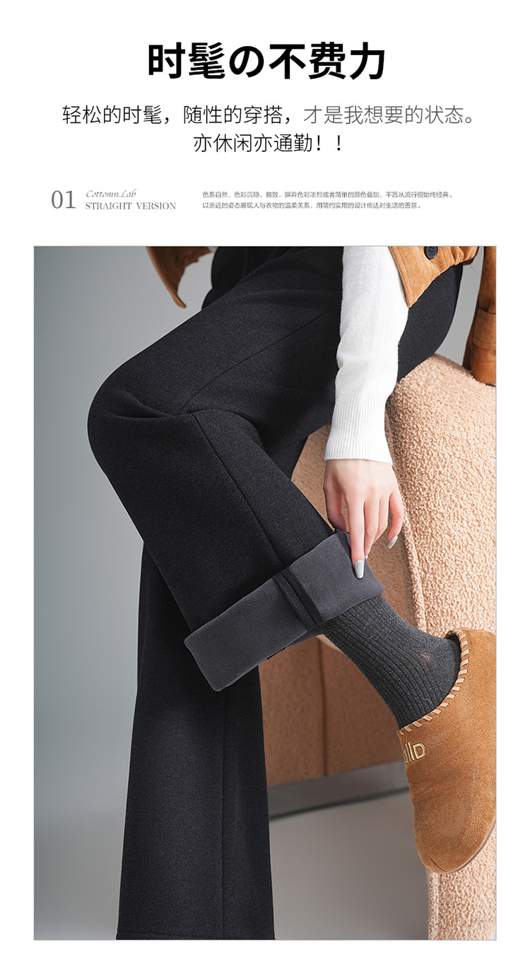 「自」全新升级【铂金会员201/天猫269/差价68】(23926)洛诗琳气质加绒直筒休闲裤2025冬季新款高腰窄版毛呢阔腿裤