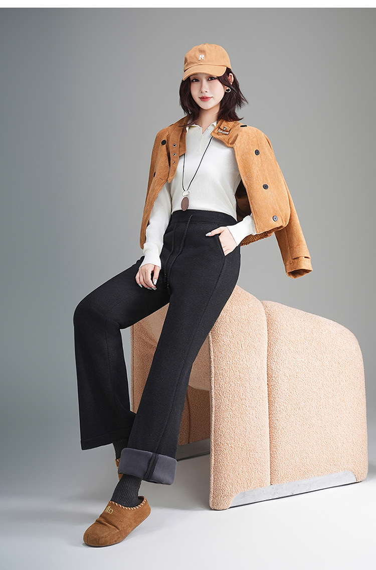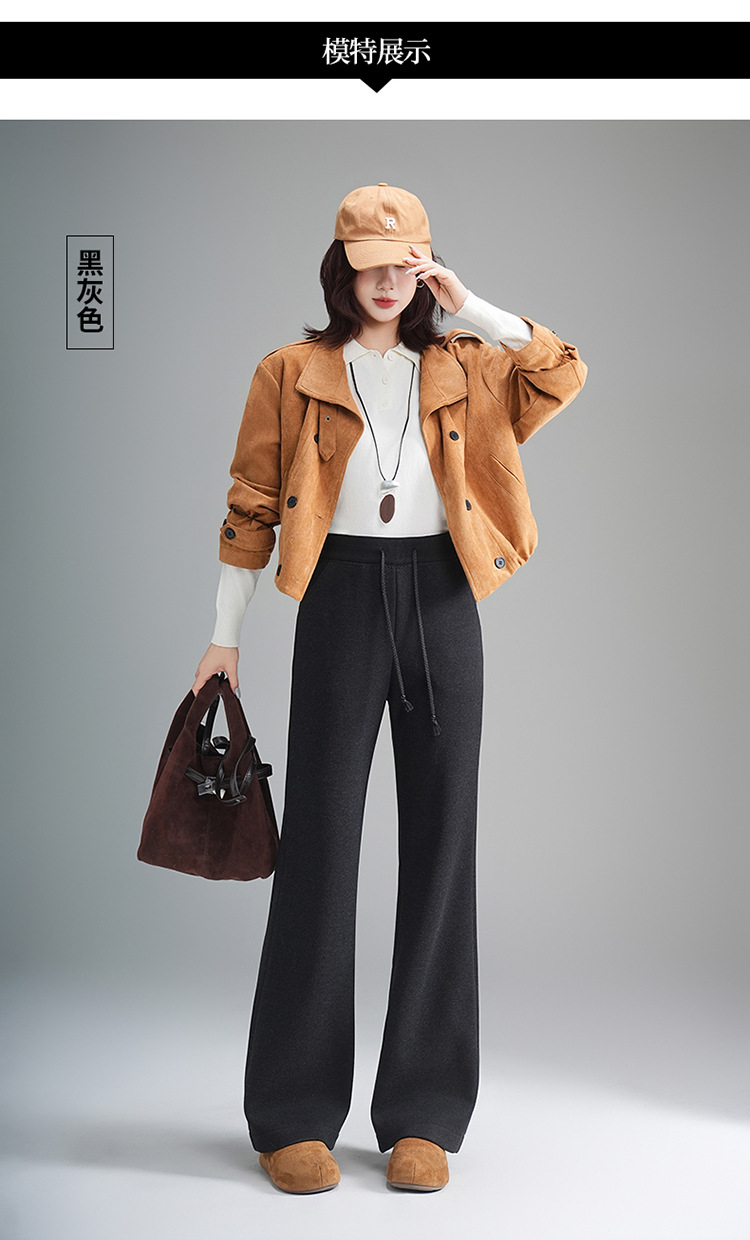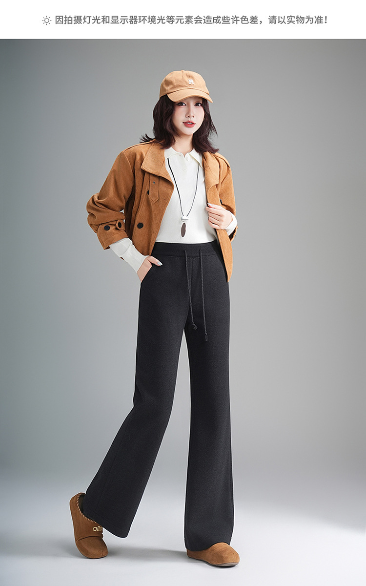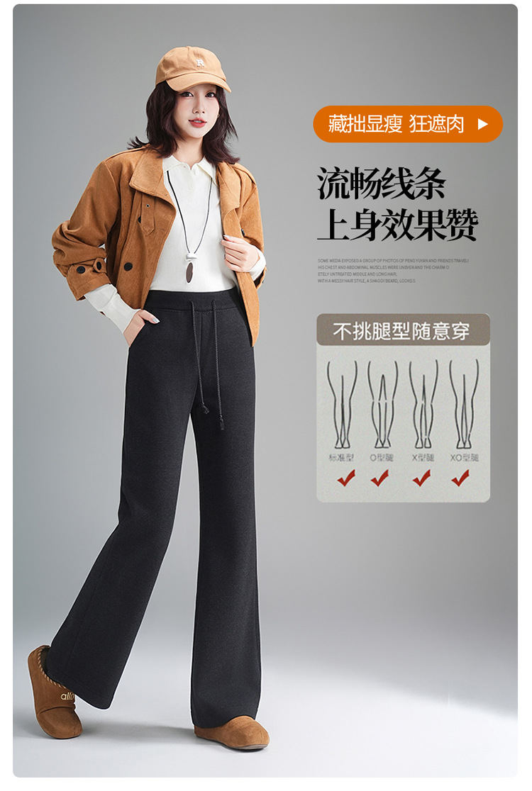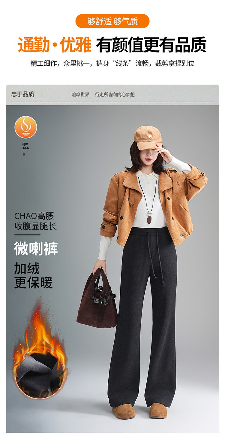 「自」全新升级【铂金会员201/天猫269/差价68】(23926)洛诗琳气质加绒直筒休闲裤2025冬季新款高腰窄版毛呢阔腿裤
