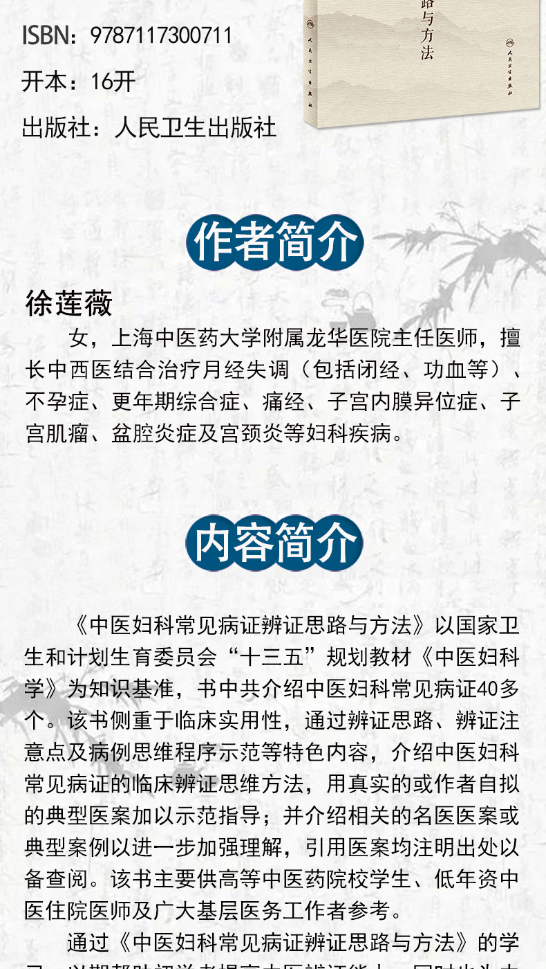 中医妇科常见病证辨证思路与方法 徐莲薇主编 2020年7月参考书