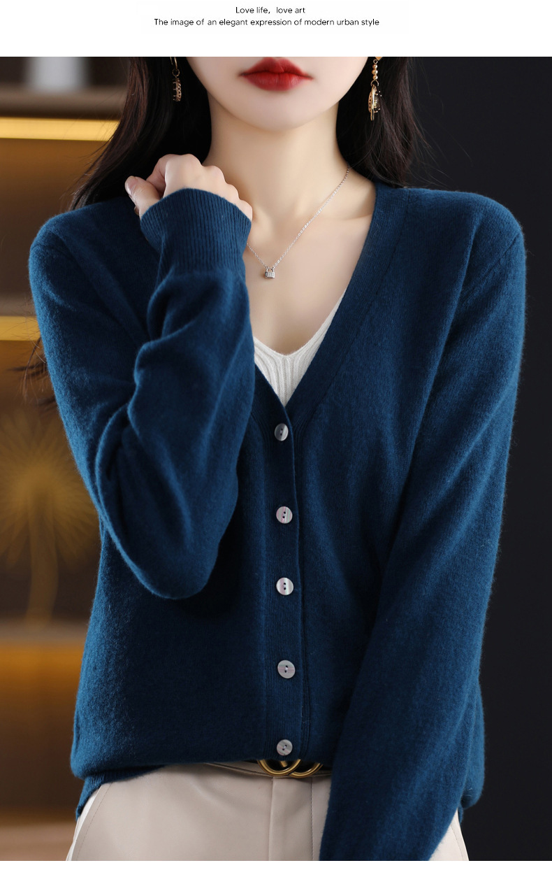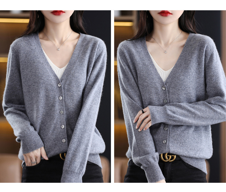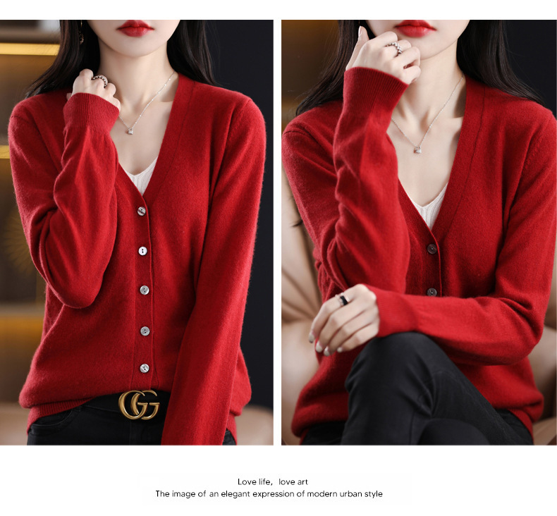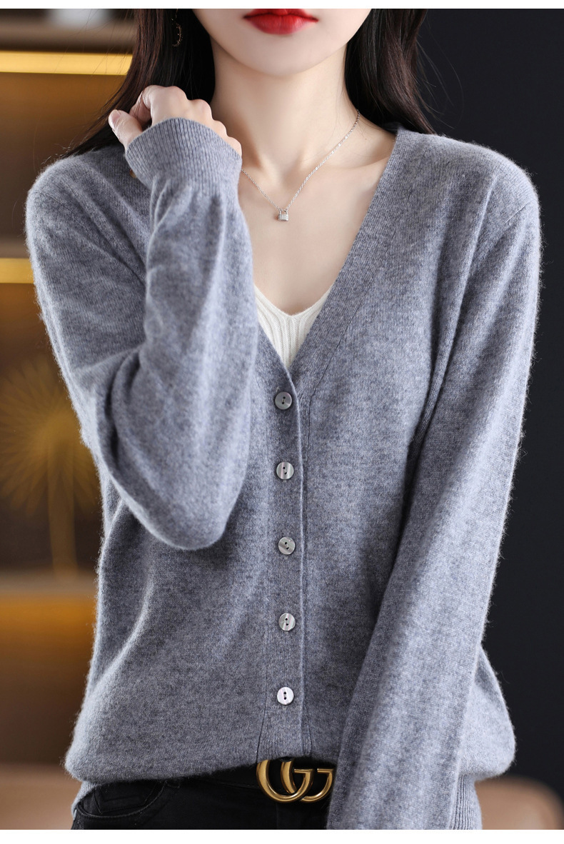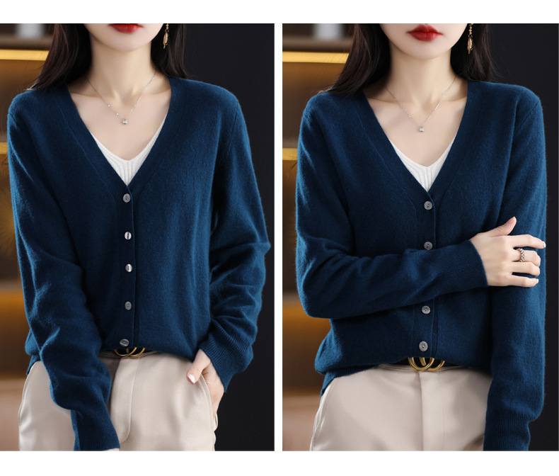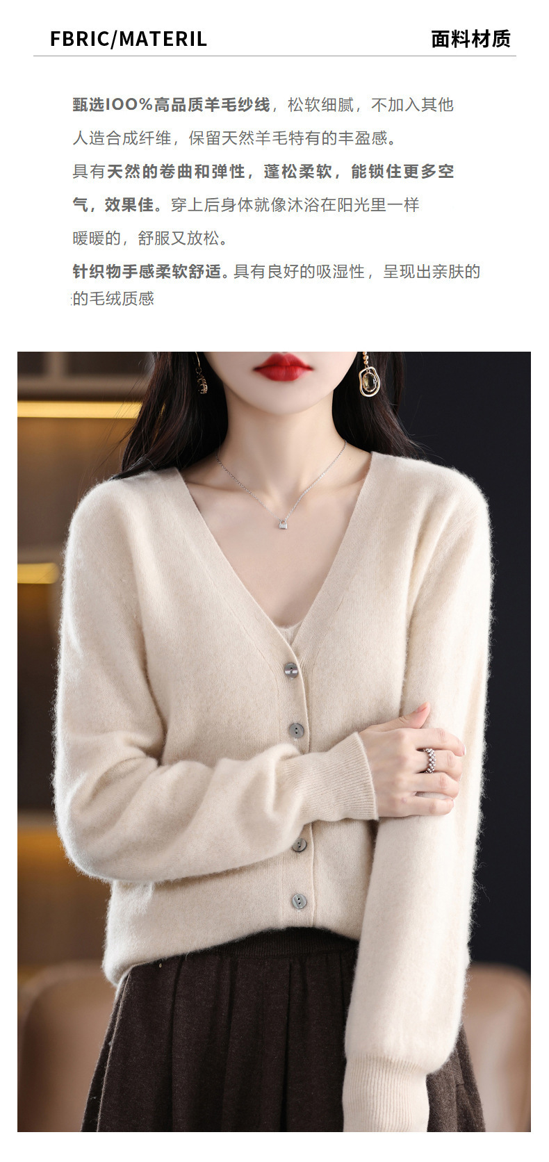 100纯羊毛薄款针织开衫女短款V领春秋新款纯色羊绒毛衣打底衫外穿