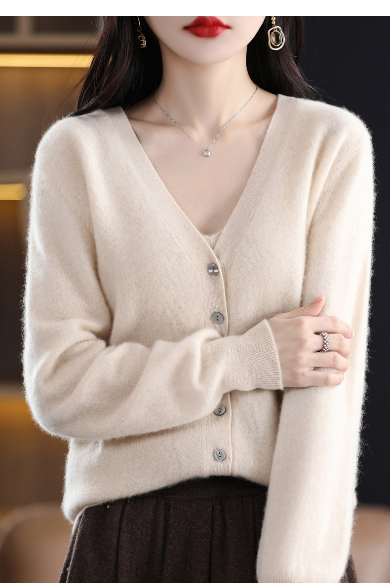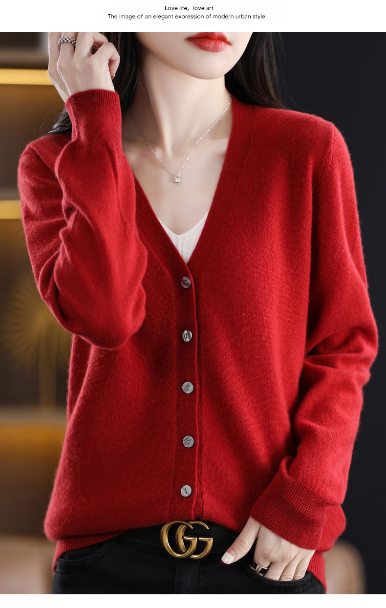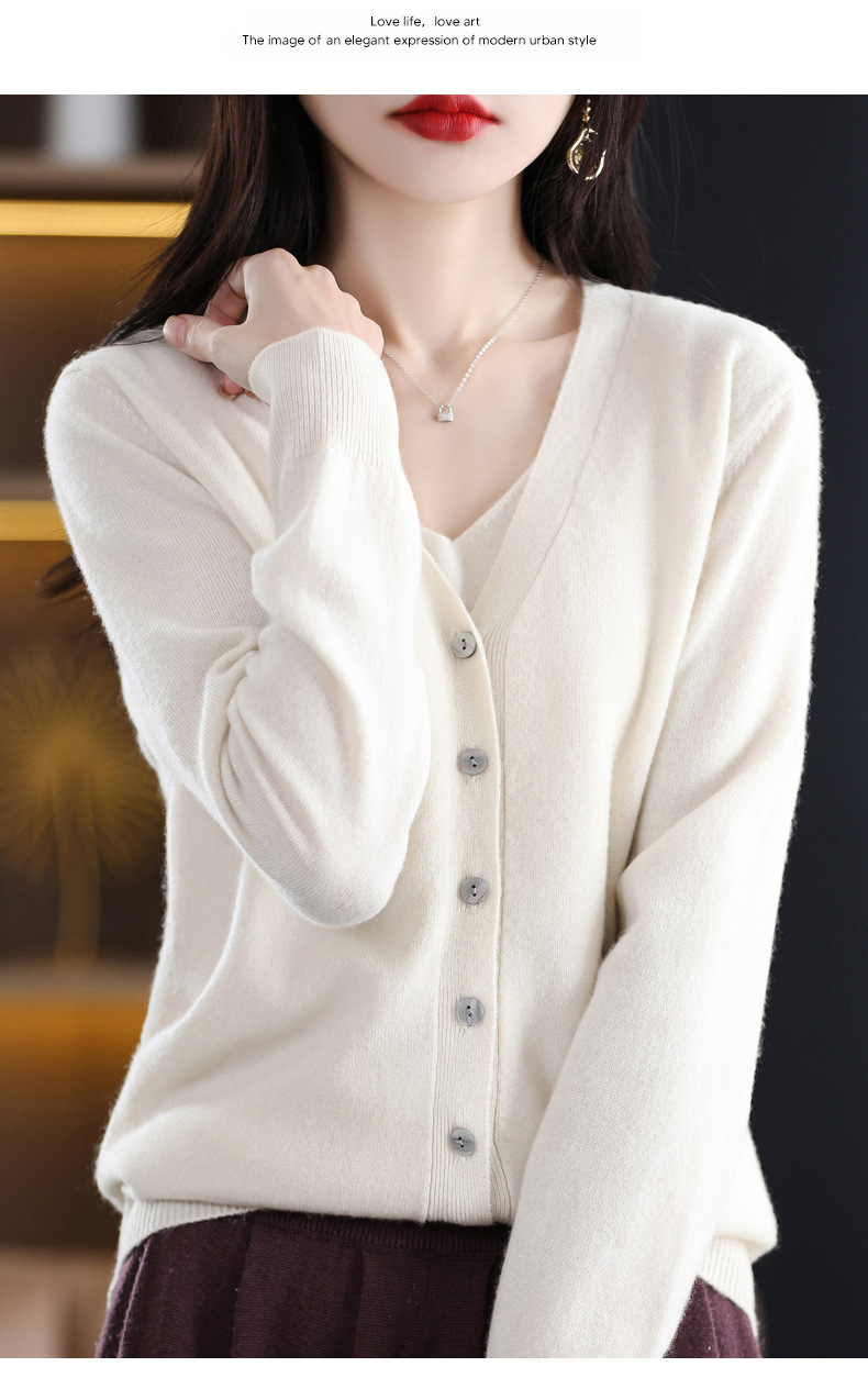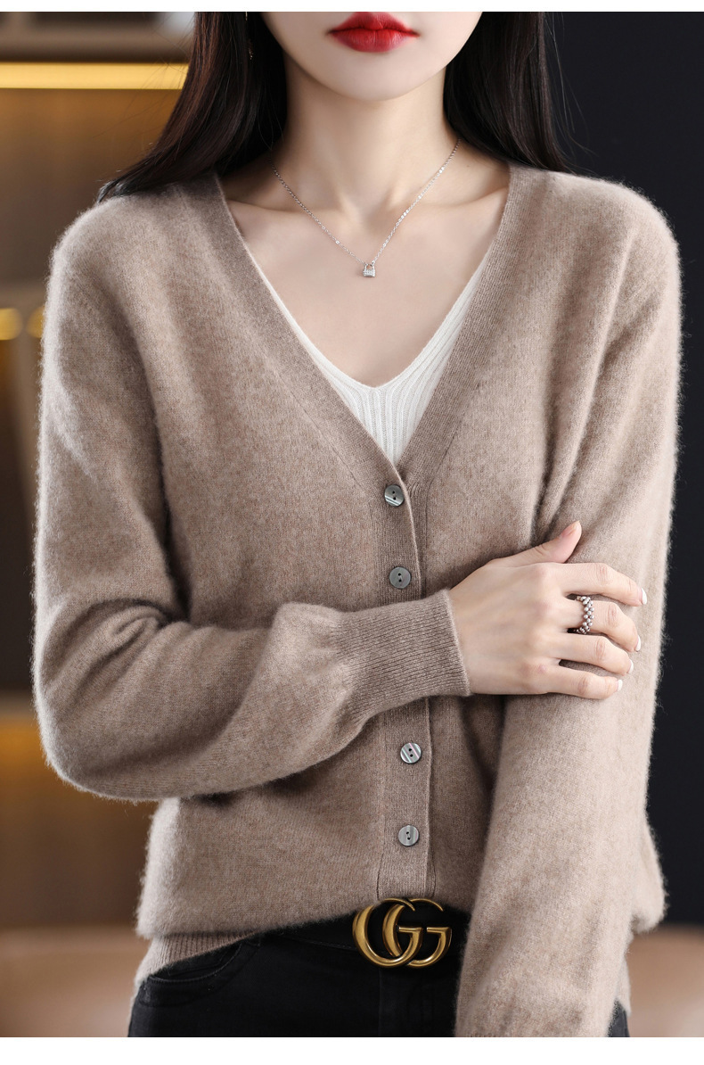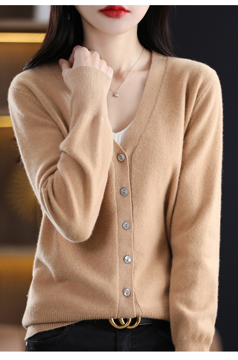 100纯羊毛薄款针织开衫女短款V领春秋新款纯色羊绒毛衣打底衫外穿