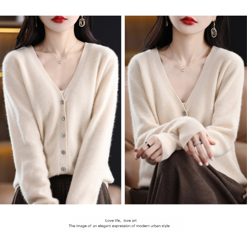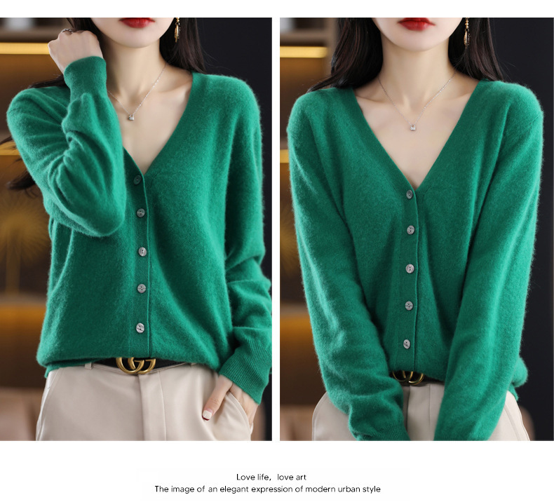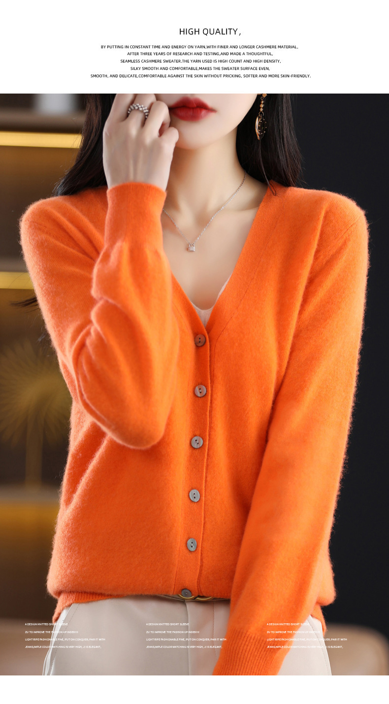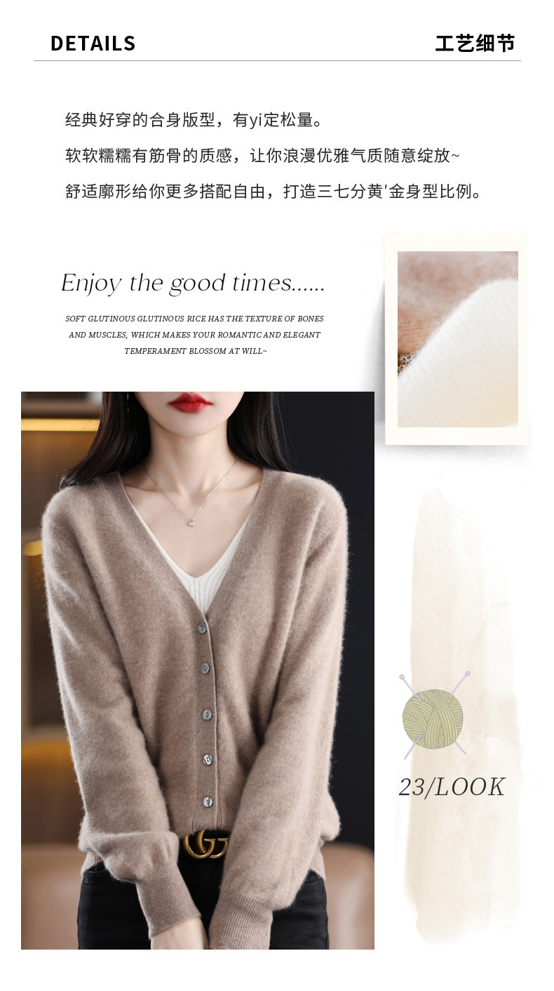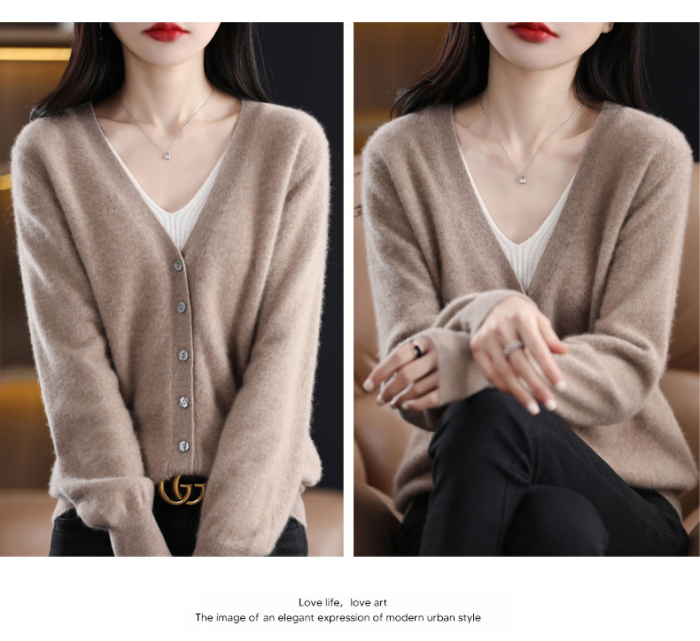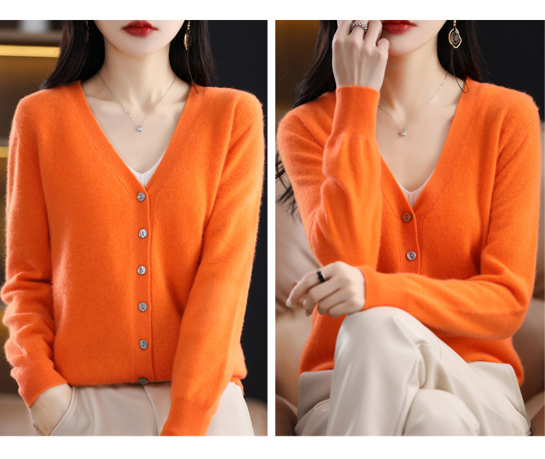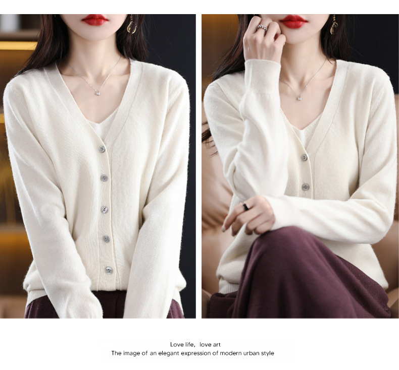 100纯羊毛薄款针织开衫女短款V领春秋新款纯色羊绒毛衣打底衫外穿
