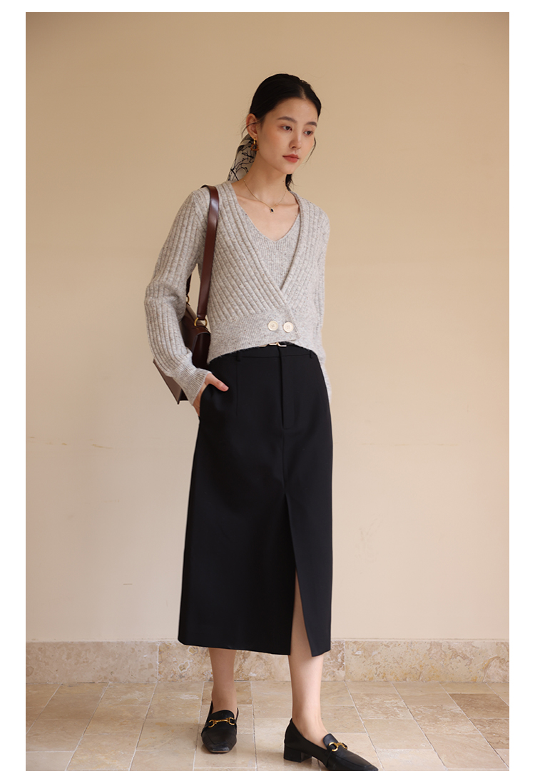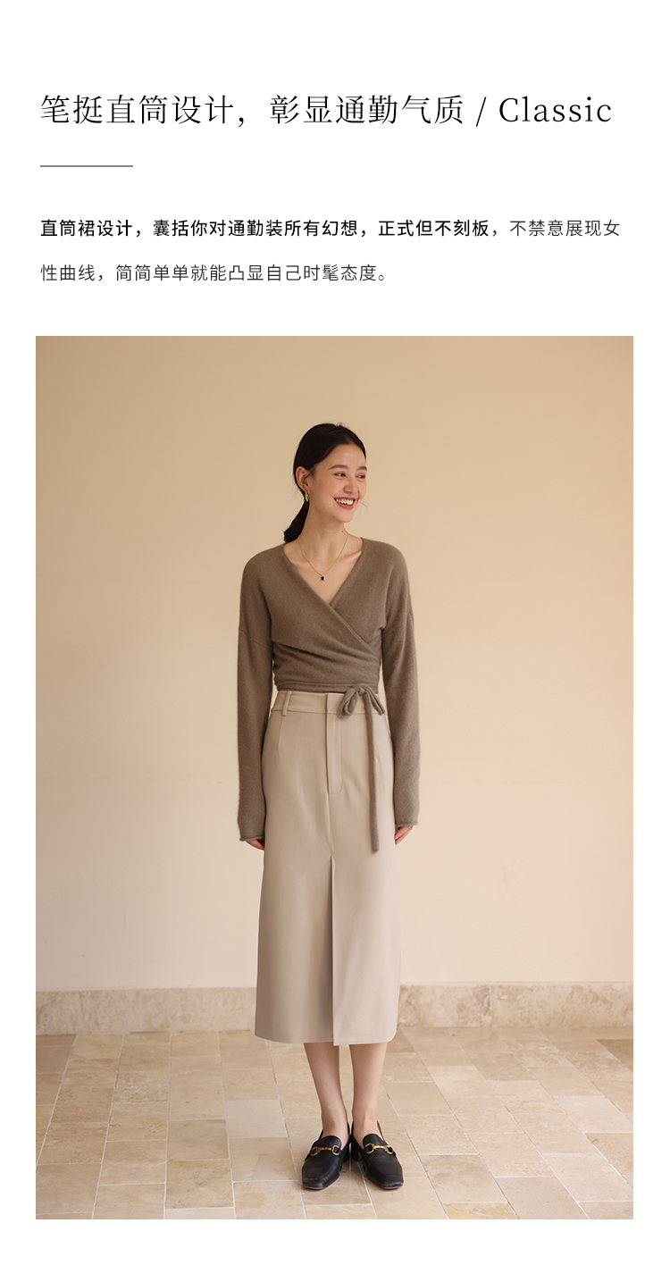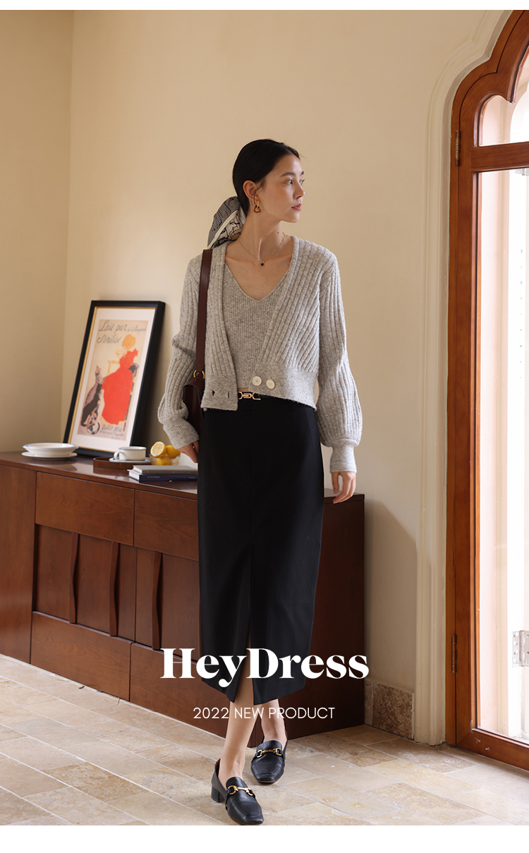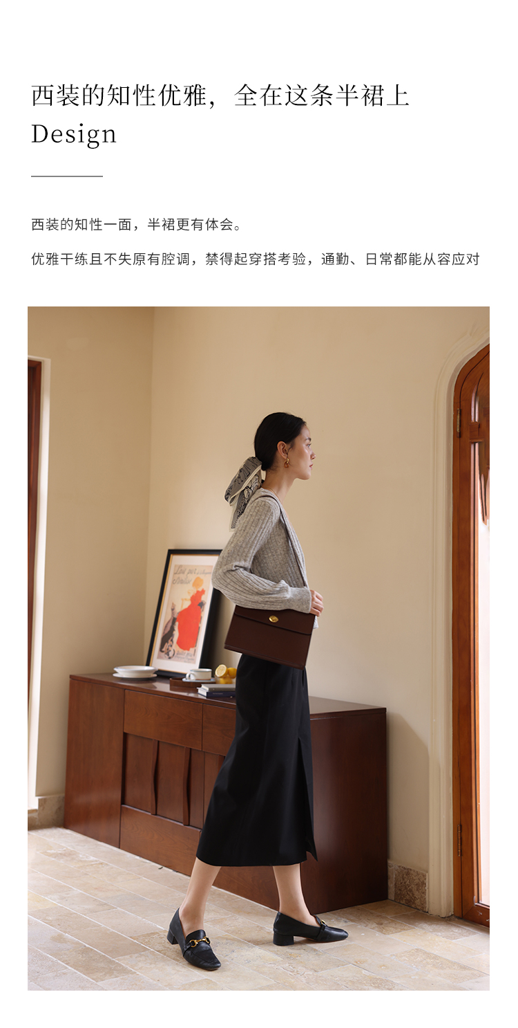 HeyDress西装半身裙女秋季高腰显瘦开叉设计中长半裙气质一步裙子