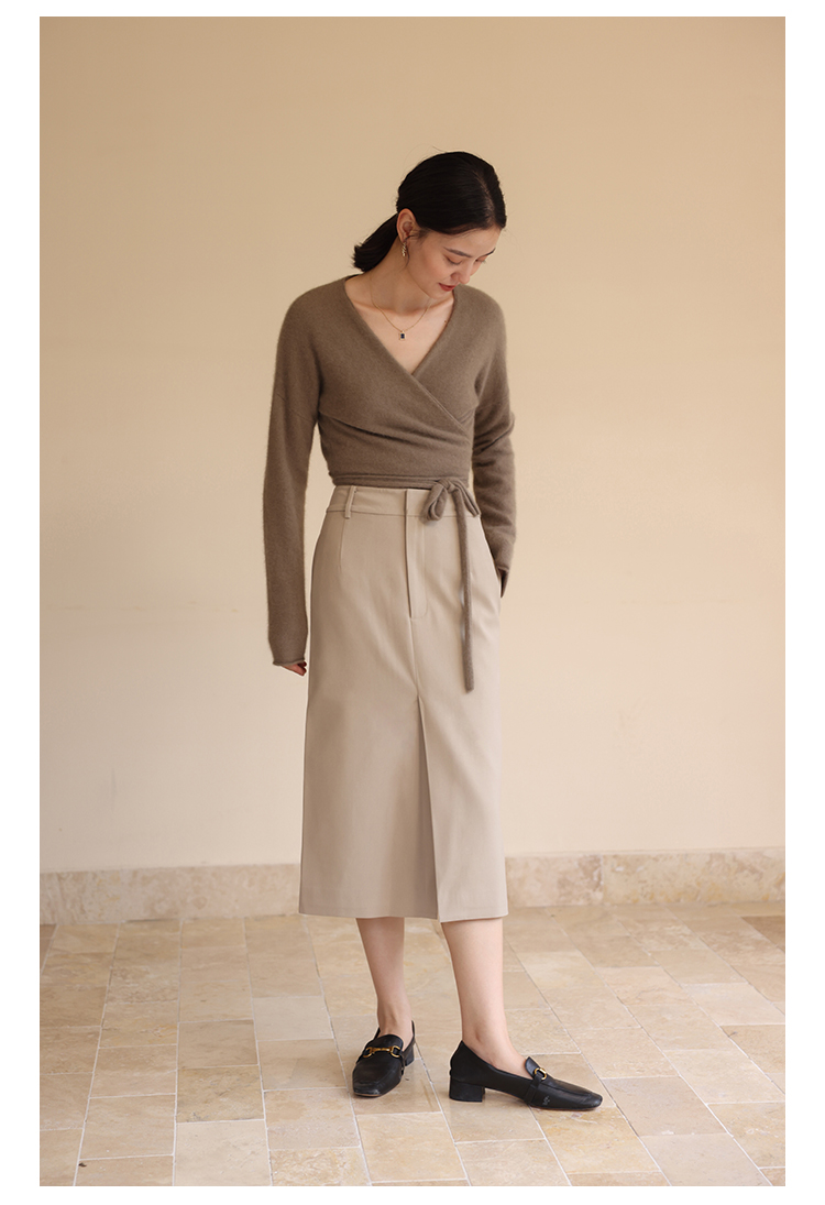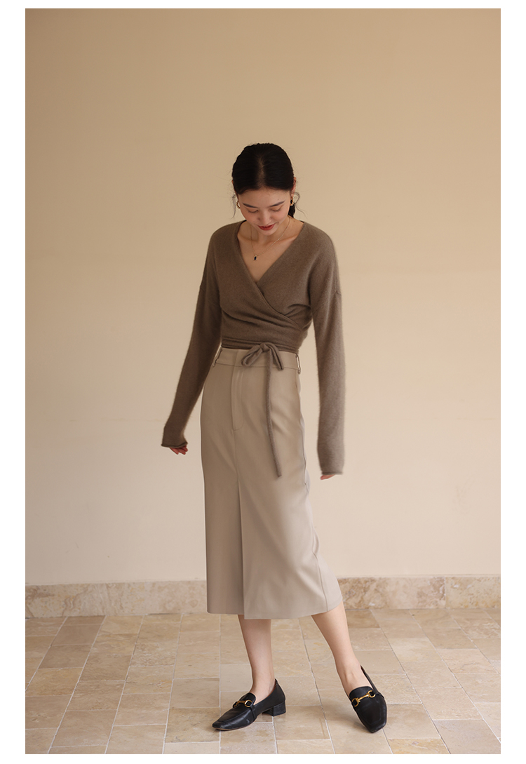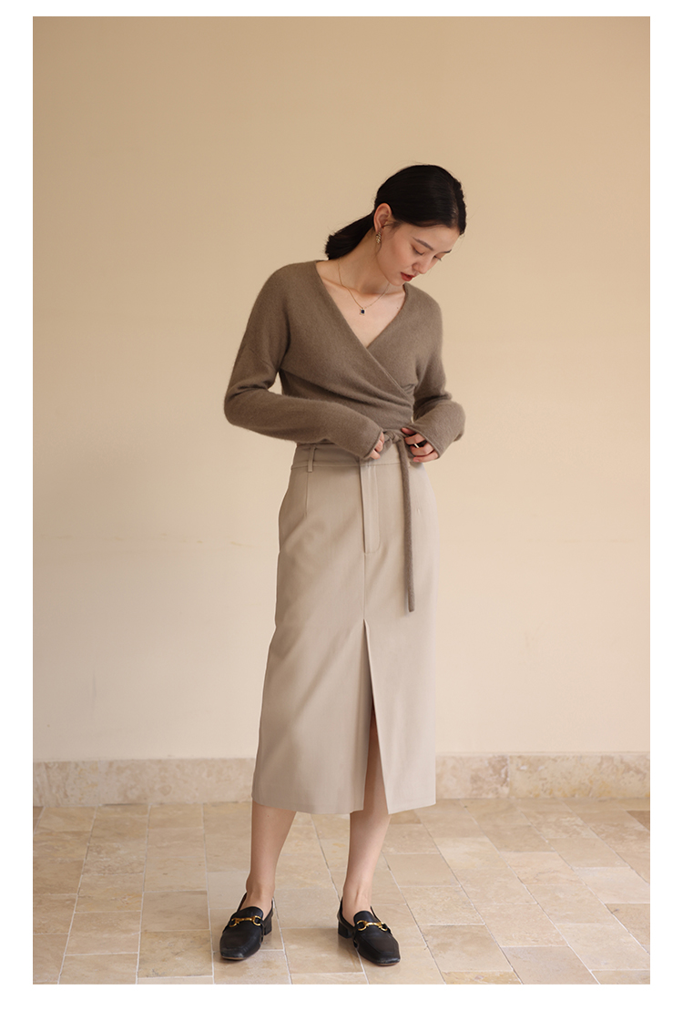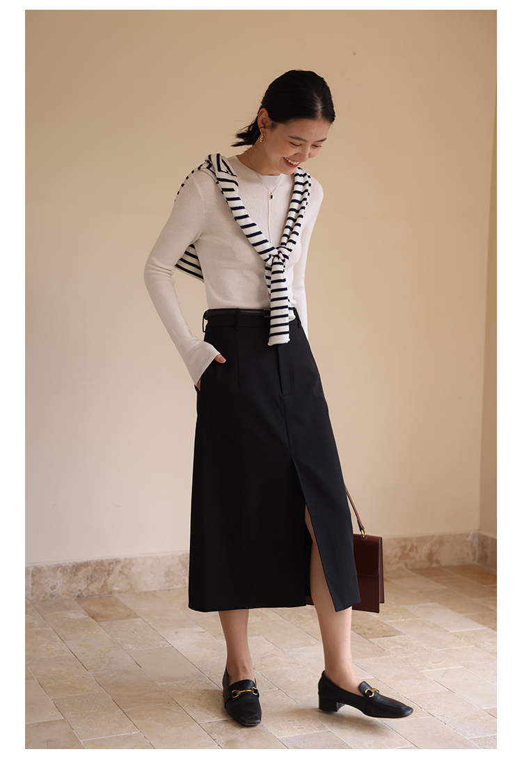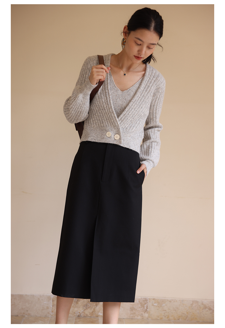 HeyDress西装半身裙女秋季高腰显瘦开叉设计中长半裙气质一步裙子
